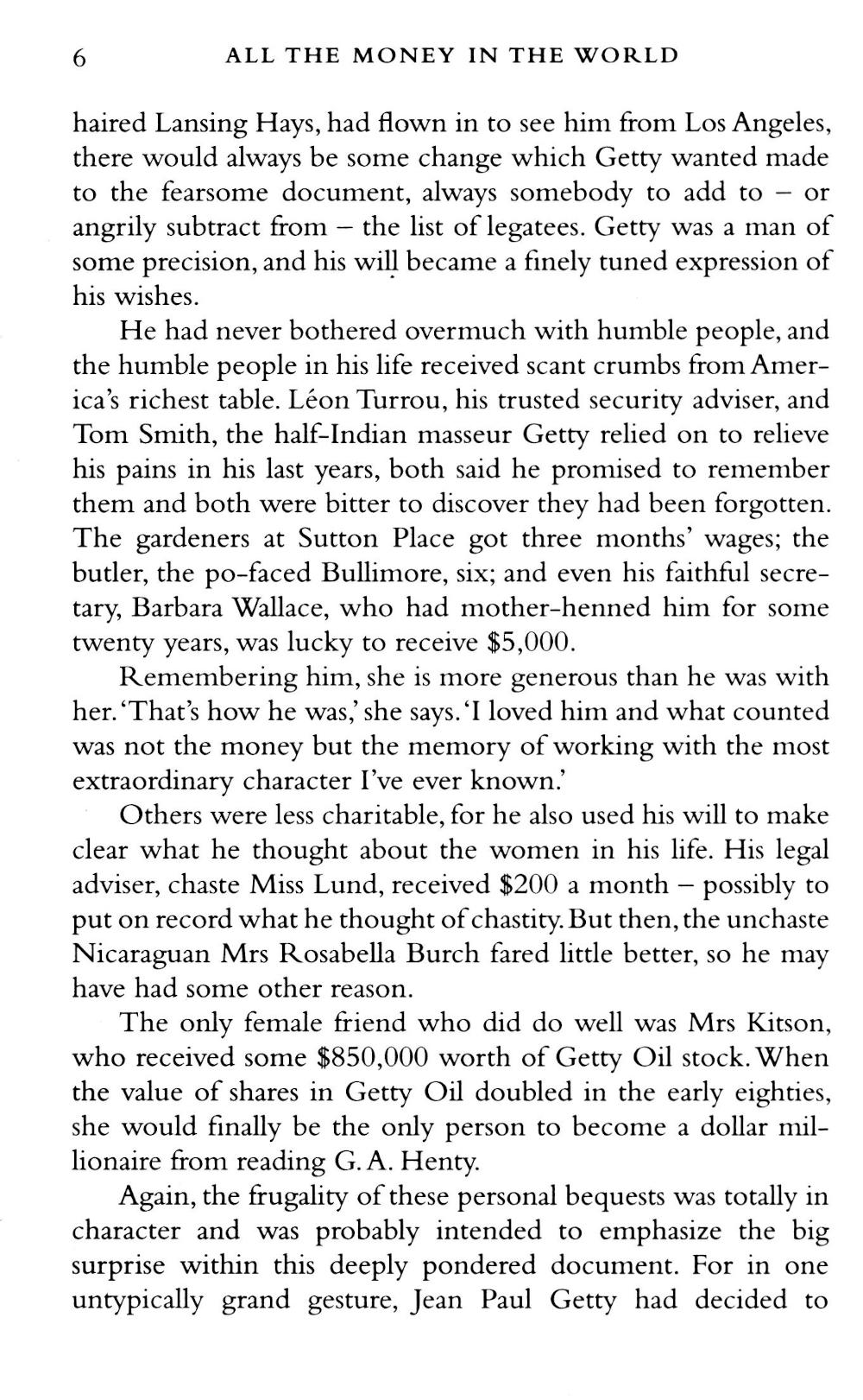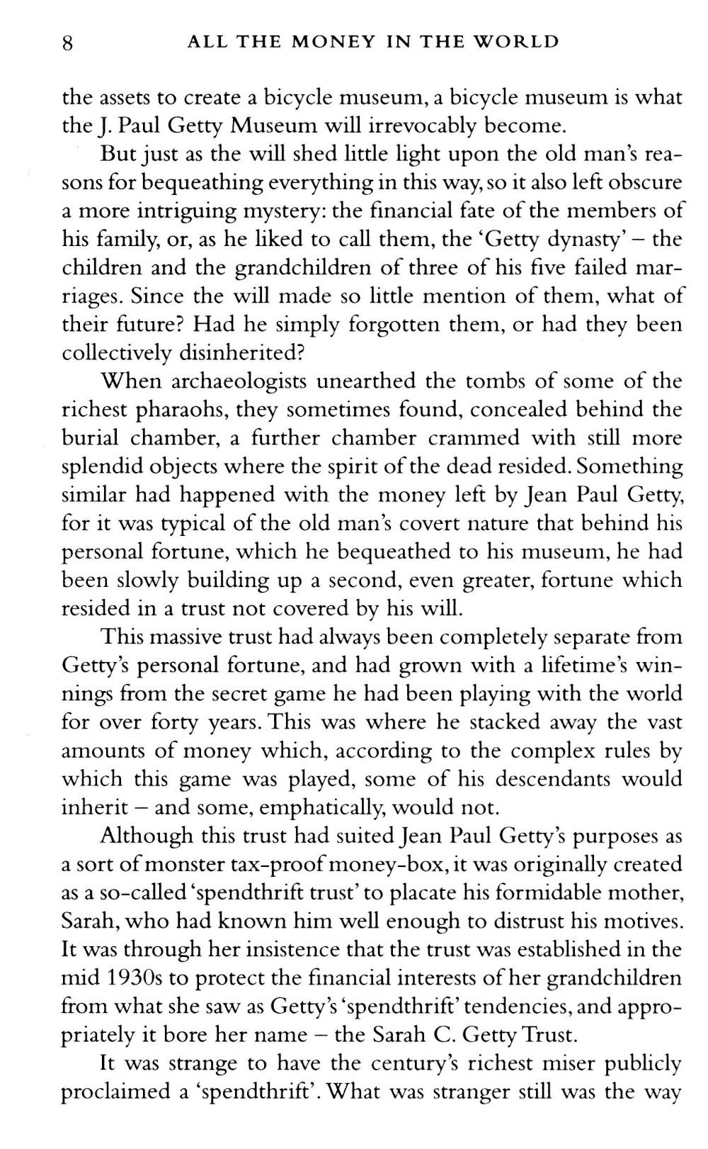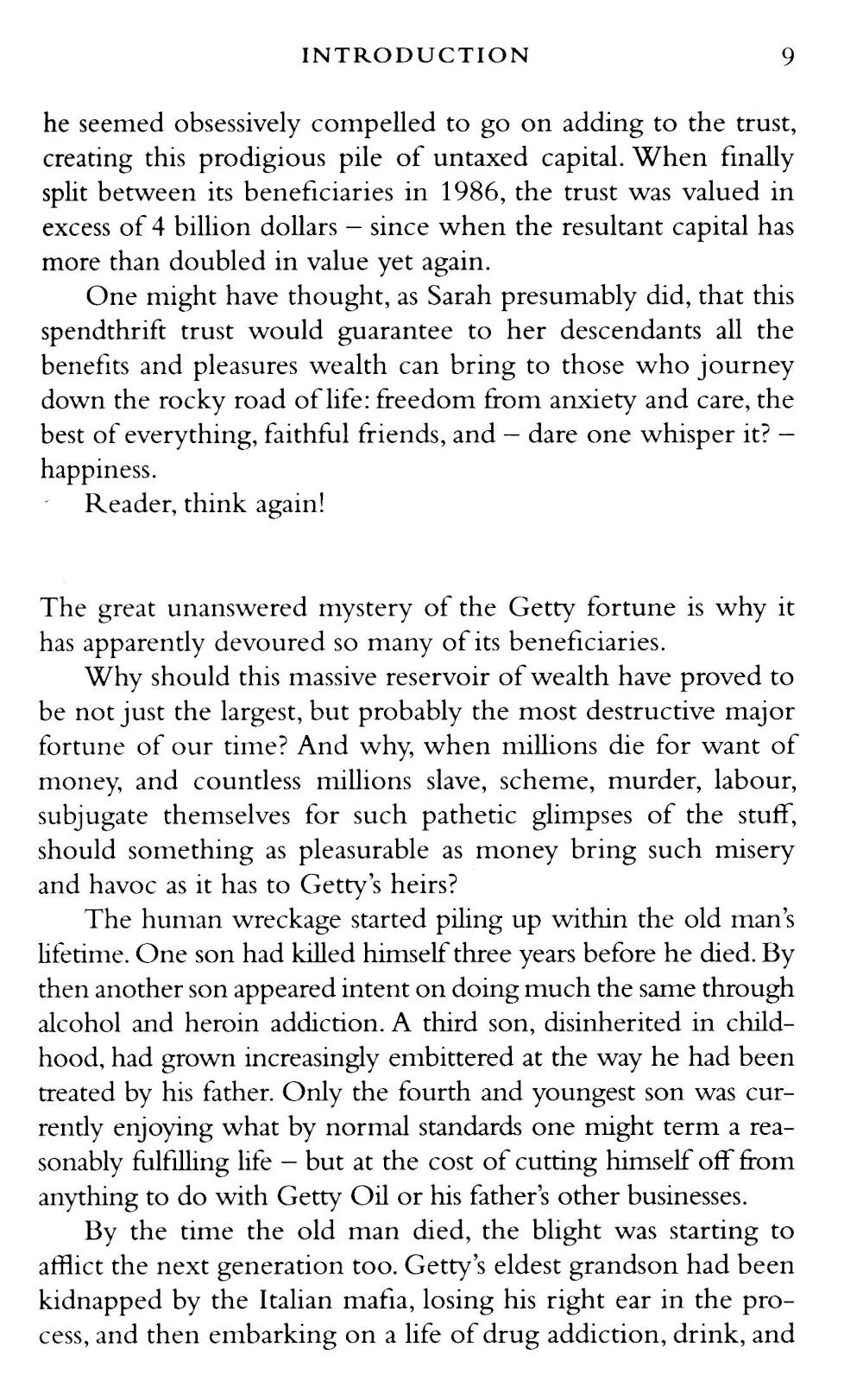 Oil tycoon J. Paul Getty created the greatest fortune in America - and came close to destroying his own family in the process. Of his four sons who reached manhood, only one survived relatively unscathed. One killed himself, one became a drug-addicted recluse and the third had to bear the stigma all his life of being disinherited in childhood. The unhappiness continued into the next generation, with the name Getty, as one journalist put it, becoming synonymous for family dysfunction. Getty's once favourite grandson John Paul Getty III was kidnapped by the Italian mafia who cut off his ear to raise a ransom and, after a lifetime of drink and drugs, became a paraplegic. His granddaughter Aileen has AIDS. And the Getty family itself has been torn apart by litigation over their poisoned inheritance. But did the disaster have to happen? John Pearson, who has specialized in biographies of families as varied as the Churchills, the British Royal Family, the Devonshires and the Krays, sets out to find the answer. The result, first published in 1995, is a fascinating saga of an extraordinary dynasty. He traces much of the trouble to the bizarre character of the avaricious, sex-obsessed billionaire, J. Paul Getty himself - and demonstrates how much of his behaviour has been repeated in succeeding generations. He describes the famous kidnapping of his grandson in graphic detail, revealing how the old man's attitude added considerably to the boy's sufferings. And he shows how the family has coped with the latest modern scourges: drugs and AIDS. For All the Money in the World is not a hopeless story. While some of the family have been damaged by the Getty legacy, others have saved themselves from disaster, most notably the cricket-loving philanthropist, J. Paul Getty Jr. Pearson's moving story of his recovery from drugs and deep personal tragedy shows that there is hope for future generations of this stricken family - and demonstrates that money can be used to buy survival and even happiness.| Издательство | William Collins |