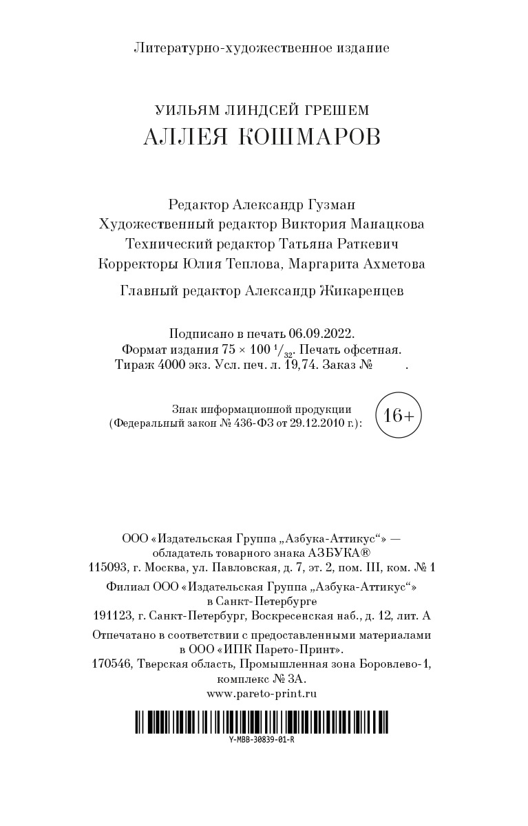 Классический роман американского нуара, однажды уже экранизированный в золотую эпоху Голливуда с Тайроном Пауэром и Джоан Блонделл в главных ролях. А сейчас на мировые экраны вышла новая киноверсия: постановщик - Гильермо дель Торо («Лабиринт Фавна», «Форма воды», «Хребет дьявола», «Хеллбой»), в фильме снимались Брэдли Купер, Кейт Бланшетт, Уиллем Дефо, Рон Перлман, Руни Мара, Тони Колетт и др. Стэн Карлайл работает в странствующем балагане «Десять в одном». Он молод, талантлив и амбициозен и, тонко понимая человеческую натуру, имеет задатки успешного менталиста - «чтеца мыслей». И вот уже Стэн выступает на престижных площадках с собственным номером, и женится на красавице-ассистентке, а его спиритические сеансы пользуются большой популярностью в высших кругах общества. Но, даже готовя самую грандиозную аферу в своей карьере, он не в силах избавиться от образа «переулка кошмаров», что преследует его с детства… «Пресловутую американскую мечту Грешем выворачивает наизнанку. Его герой ковыляет во тьме по переулку кошмаров, до последнего надеясь - и мы надеемся вместе с ним, - что путь не окончится тупиком и впереди забрезжит свет» (Los Angeles Times).