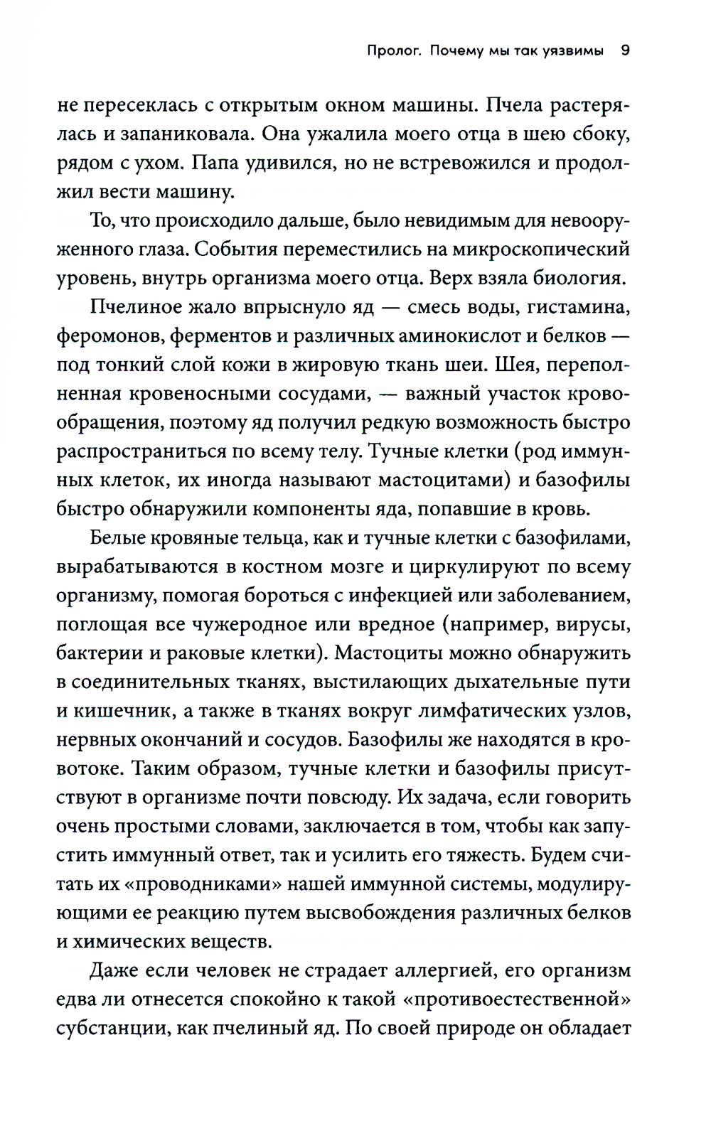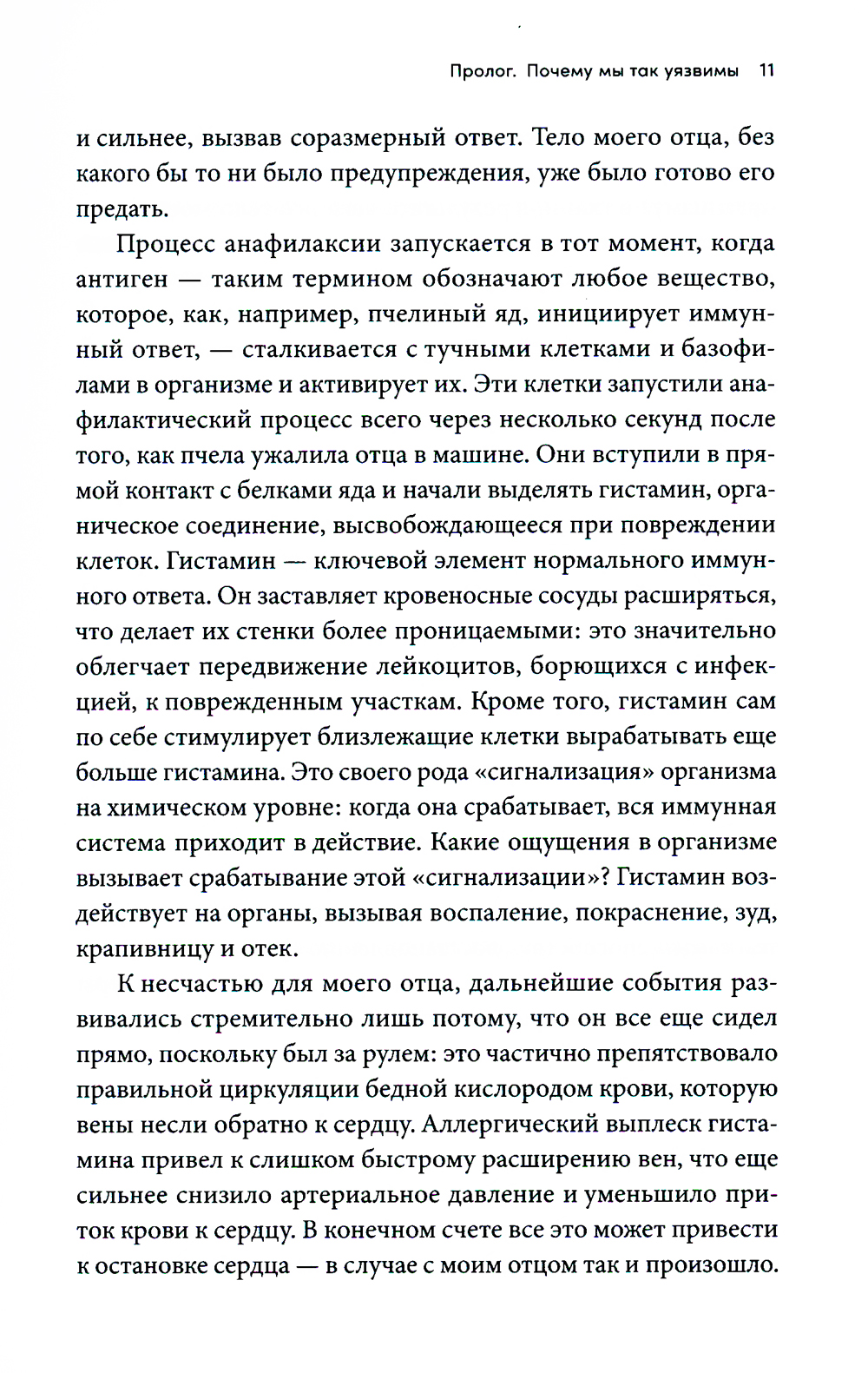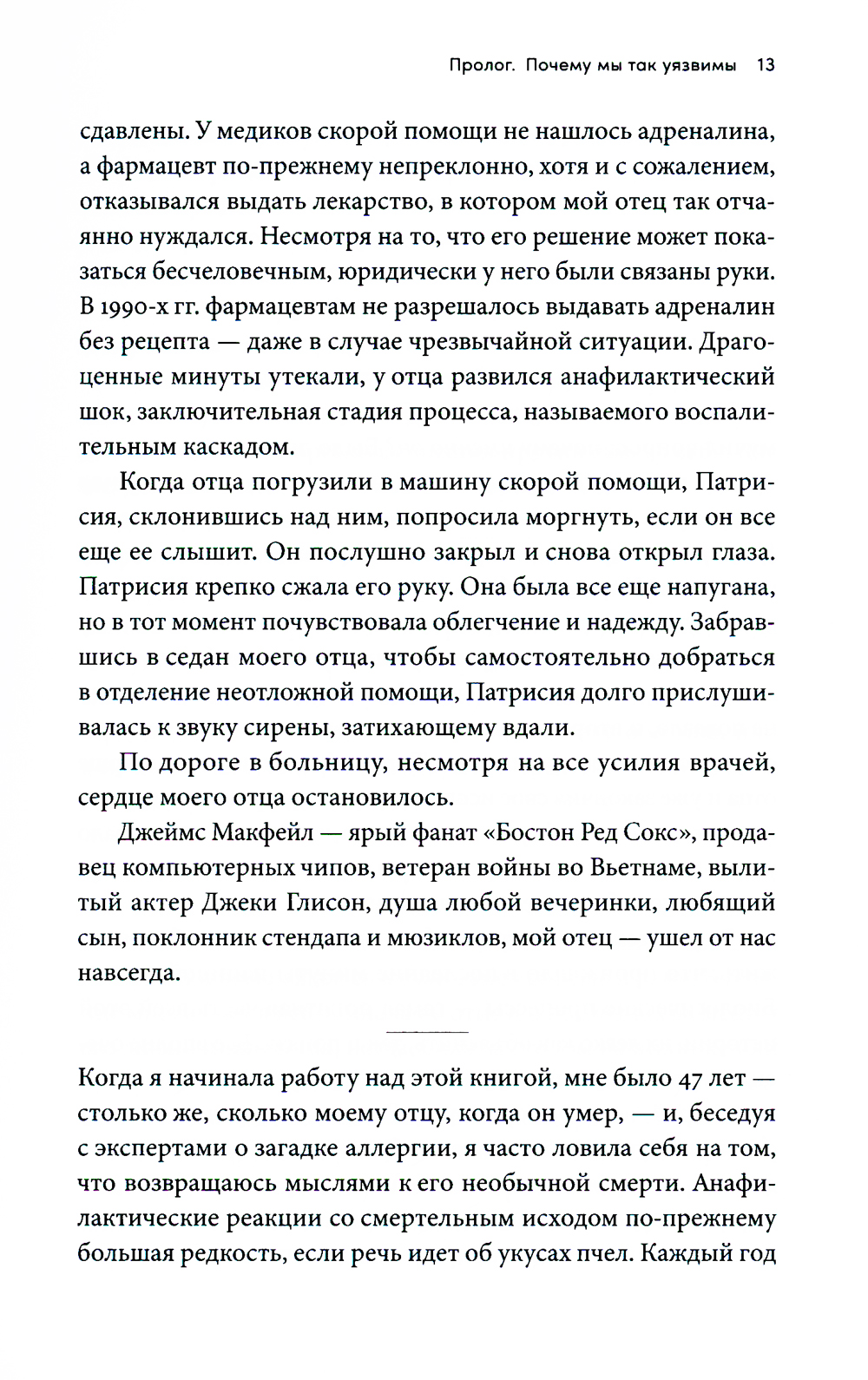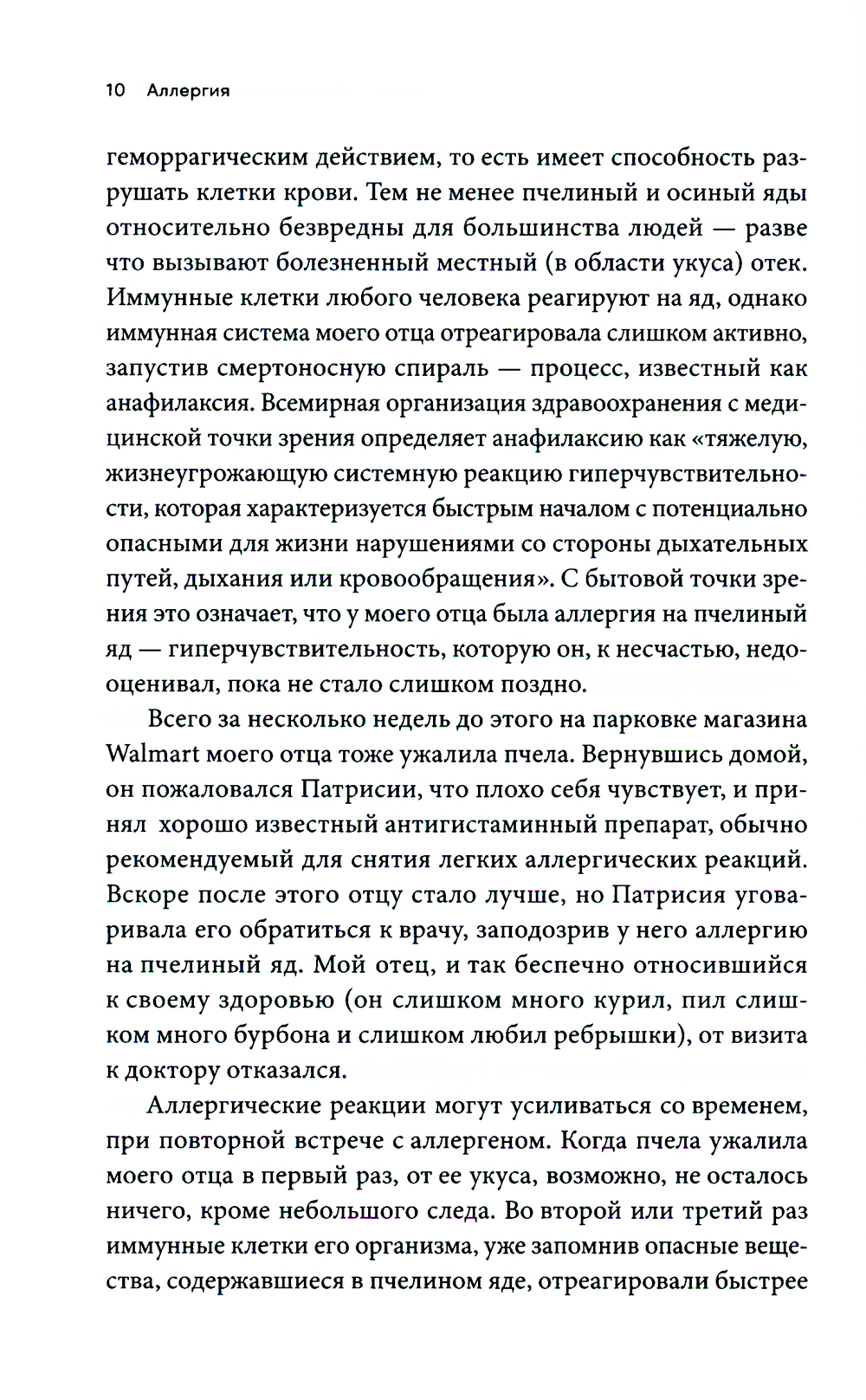 Сенная лихорадка. Аллергия на арахис. Экзема. Миллиарды людей во всем мире страдают той или иной формой аллергии. Число аллергиков растет катастрофически, и это увеличивает моральную и физическую нагрузку не только на них самих, но и на их семьи, систему здравоохранения и общество в целом. Медицинский антрополог Тереза Макфейл, тоже страдающая от аллергии и потерявшая из-за нее отца (он умер от анафилактического шока после укуса пчелы), решила разобраться в причинах недуга, почему он может быть смертельным и какой вред несет. Эта книга представляет собой полноценное и всестороннее исследование феномена аллергии - начиная с ее первого медицинского описания в начале XIX в. и заканчивая недавними революционными разработками в области биологических препаратов и иммунотерапии, которые дают надежду самым тяжелым пациентам. В поисках материалов для своей книги автор работала с сотнями экспертов, пациентов и энтузиастов, общалась с биологами и врачами лучших аллергологических клиник мира. Так появилась книга о самых разных видах аллергии: что они из себя представляют, почему возникают и как могут повлиять на судьбы человечества. Если мы лучше поймем это во всех смыслах раздражающее явление, то сможем создать более комфортную и безопасную среду для себя и будущих поколений.| Издательство | Альпина Паблишер |