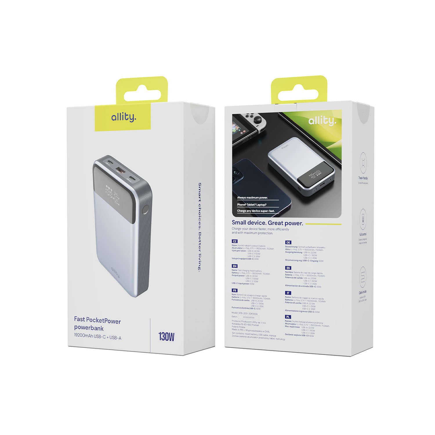 Allity APB-200 внешний аккумулятор с быстрой зарядкой PD 130W и QC / 19200mAh