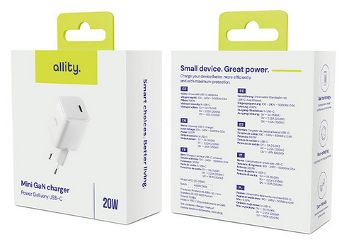 Дизайн: Компактный, с использованием технологии GaN (нитрид галлия)