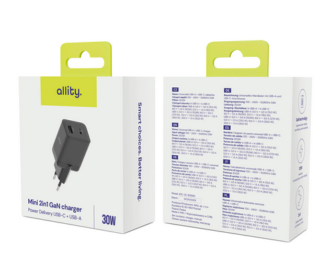 Дизайн: компактный, с использованием технологии GaN (нитрид галлия)