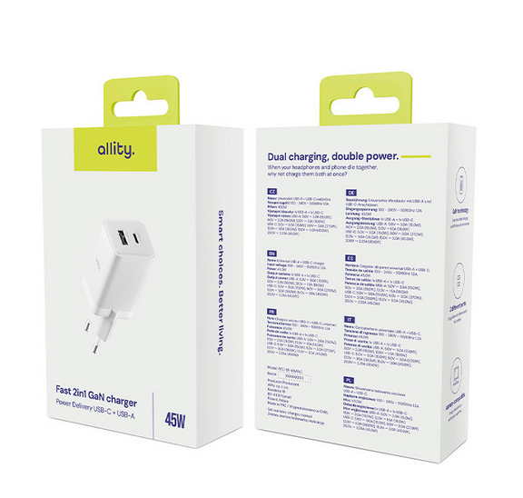 Дизайн: Компактный, с использованием технологии GaN (нитрид галлия)