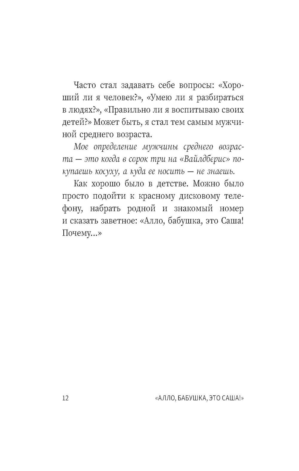 Аннотация: Алло, бабушка, это Саша!" Истории в разговорах. Одиссея мужчины среднего возраста. Повесть о герое нашего времени: книга-перевертыш