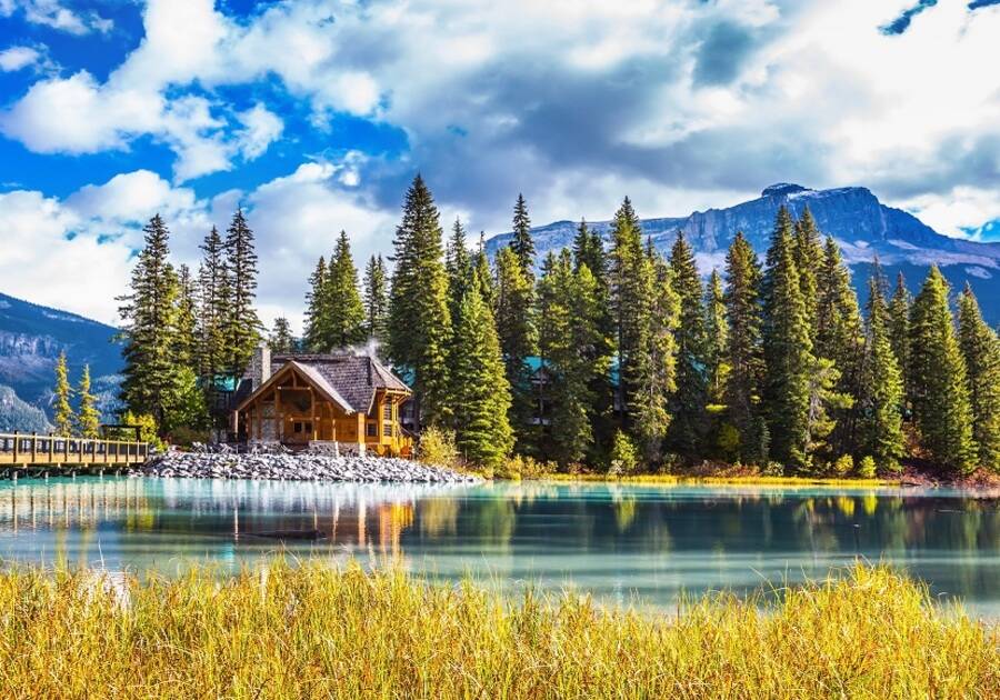 Алмаз мозаика (клас.) 30х40 см, с подр., с полн. заполн. (цв.) Одинокий домик у озера.(Арт. AC34067)