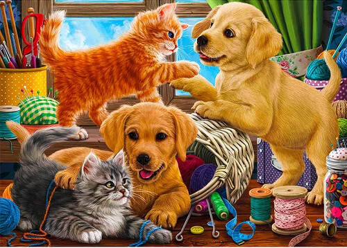 Алмаз.мозаика (класс.) 30х40 см, на картоне с част. заполн. (24 цветов). ЩЕНКИ И КОТЯТА. Арт. ACA010