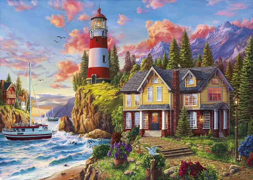 Аннотация: Алмаз. мозаика 40х50 c подр., с частичн. заполн. (блест.), 33цв. КРАСИВЫЙ ДОМ У МАЯКА. Арт. ASD5011