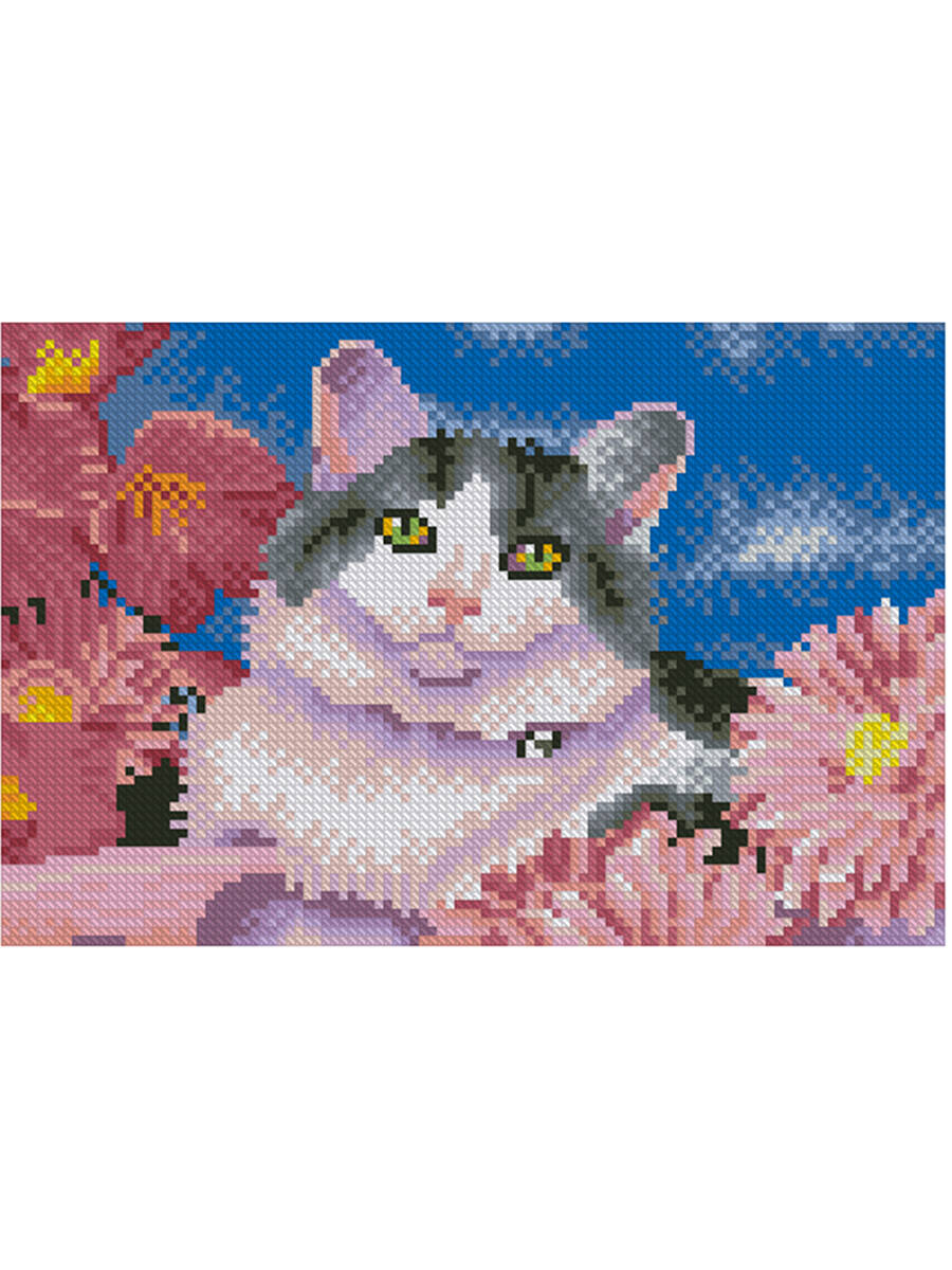 Алмазн. мозаика 22х32 c подр., с полн. заполн. (блест.),26цв. КОТИК В РОЗОВЫХ ЦВЕТАХ. Арт. AS22065
