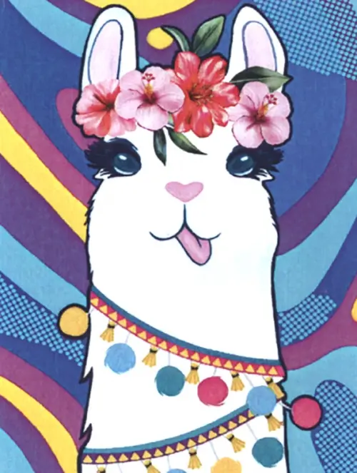 Алмазная мозаика. Лама в гирлянде
