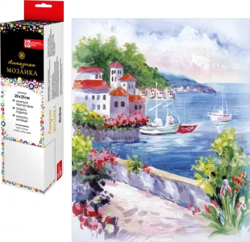 Набор для творчества Алмазная мозаика арт. 62365 / 20 МОРСКОЕ УТРО, размер: 20*25 см, (23 цветов страз, холст с напечатанной картиной, покрытый клеевым слоем и защитной пленкой, пакеты со стразами, лоток для страз, стилус, силикон для страз, клей, пинцет металлический, схема, дополнительные пакеты с zip-молнией в комплекте, форма страз: круглая, тип выкладки: полная, картонная коробка с европодвесом)
