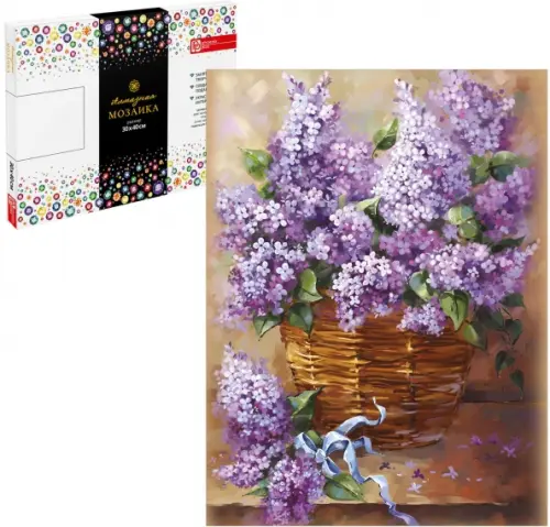 Алмазная мозаика Сирень в корзине, 30х40, с подрамником