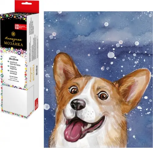 Набор для творчества Алмазная мозаика арт. 62369 / 20 ВЕСЕЛЫЙ КОРГИ, размер: 20*25 см, (22 цветов страз, холст с напечатанной картиной, покрытый клеевым слоем и защитной пленкой, пакеты со стразами, лоток для страз, стилус, силикон для страз, клей, пинцет металлический, схема, дополнительные пакеты с zip-молнией в комплекте, форма страз: круглая, тип выкладки: полная, картонная коробка с европодвесом)