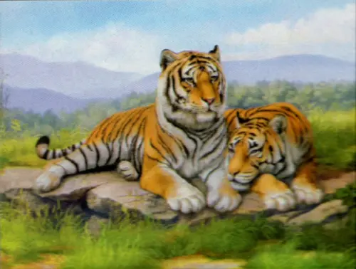 Алмазная вышивка с полным заполнением на холсте. Тигры