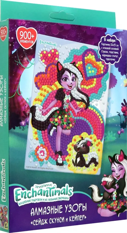 Отправляемся в блестящее путешествие в мир алмазной мозаики вместе с набором Enchantimals "Сейдж Скунси и Кейпер".
