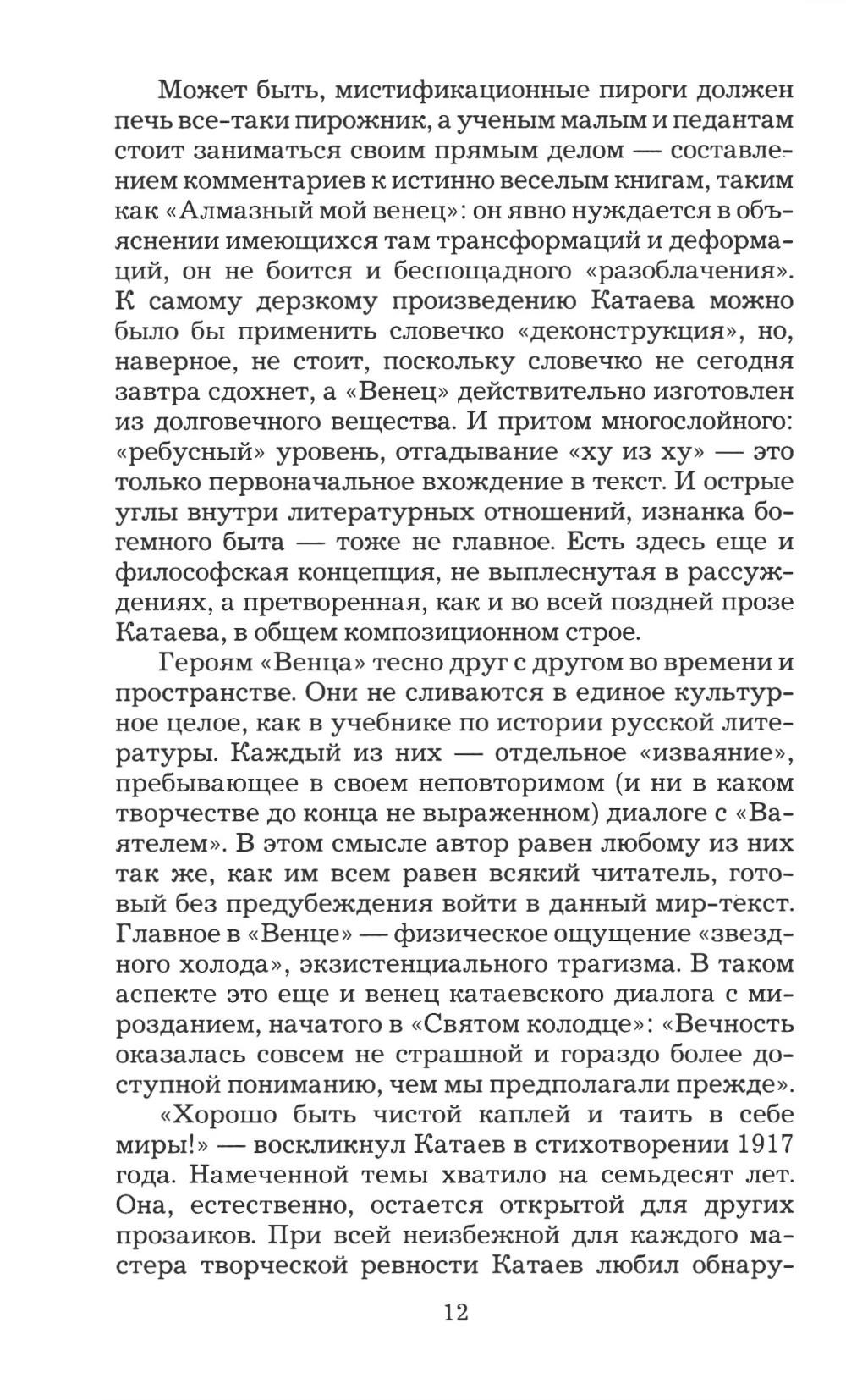 Выдающийся советский писатель, автор знаменитых произведений «Белеет парус одинокий» и «Сын полка» Валентин Петрович Катаев (1897-1986) в поздний период творчества обратился к мемуарной прозе, создав ряд лирико-философских мемуарных повестей, среди которых «Святой колодец», «Трава забвенья» и «Алмазный мой венец». В них писатель сочетает документальную точность с художественным вымыслом, рисуя яркие портреты современников - Бабеля, Маяковского, Бунина, Есенина, Мандельштама, Олеши и др. Его проза отличается лиризмом, игрой с памятью и временем, иронией и ностальгией по ушедшей эпохе. Через личные воспоминания он воссоздаёт атмосферу литературной жизни 1920-30-х годов, размышляя о творчестве, дружбе и быстротечности бытия. Этот период его творчества стал не только исповедью поколения, но и новаторским явлением в советской литературе.| Издательство | Книж.клуб Книговек |