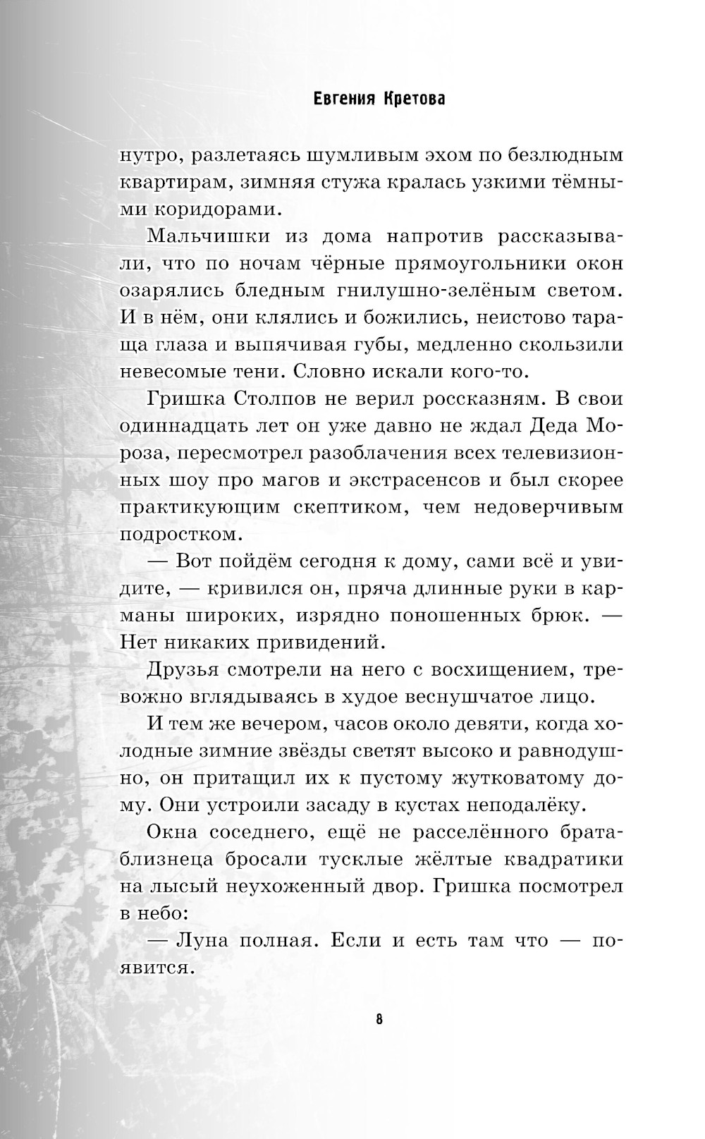 Лера Ушакова - старшеклассница из Москвы, которой предстоит принять или отвергнуть дар, - способность общаться с усопшими. Но Лера… не знает об этом. Пока не встречает призрак женщины в своей же квартире. Призрак просит о помощи, Лера соглашается помочь, и… граница миров нарушается, её подруги, гадая на зеркалах, попадают в иной мир, а за Лерой охотится злой дух!| Издательство | Эксмо |