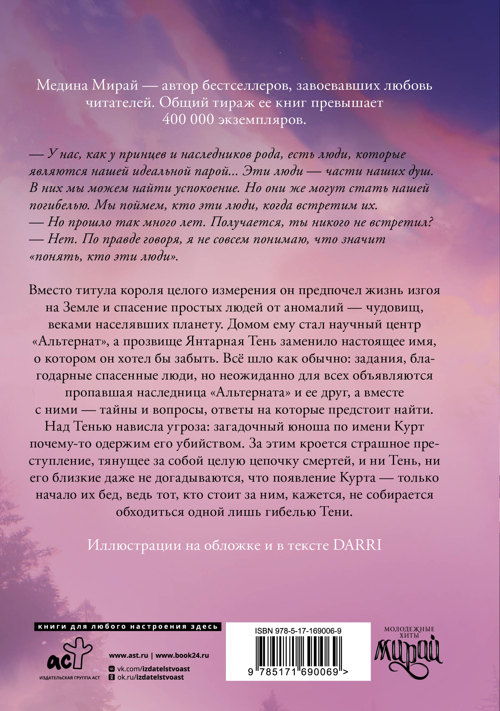 Вместо титула короля целого измерения он предпочел жизнь изгоя на Земле и спасение простых людей от аномалий - чудовищ, веками населявших планету. Домом ему стал научный центр "Альтернат", а прозвище Янтарная Тень заменило настоящее имя, о котором он хотел бы забыть. Всё шло как обычно: задания, благодарные спасенные люди, но неожиданно для всех объявляются пропавшая наследница "Альтерната" и ее друг, а вместе с ними - тайны и вопросы, ответы на которые предстоит найти. Над Тенью нависла угроза: загадочный юноша по имени Курт почему-то одержим его убийством. За этим кроется страшное преступление, тянущее за собой целую цепочку смертей, и ни Тень, ни его близкие даже не догадываются, что появление Курта - только начало их бед, ведь тот, кто стоит за ним, кажется, не собирается обходиться одной лишь гибелью Тени.| Издательство | Издательство "АСТ" |