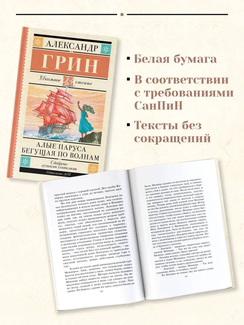 Море. Тёплое, синее, солёное… Всё, что с ним связано, кажется необыкновенным: захватывающие истории о пиратах, романтические легенды, байки рыбаков, шумная жизнь порта… Есть два замечательных произведения А. Грина, которые буквально наполнены морским духом. Конечно, это "Алые паруса" и, конечно, "Бегущая по волнам". Ни назиданий, ни описаний - лишь удивительная жизнь и море. Для среднего школьного возраста.| Издательство | ИЗДАТЕЛЬСТВО "АСТ" |