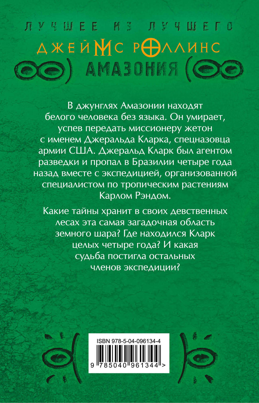 «Никто - ну просто никто - не работает в этом жанре лучше Роллинса». - Ли Чайлд «Роллинс не пишет романы, а создает головокружительные аттракционы». - Booklist «В его книгах есть всё. Он мастер управляемого хаоса». - Fort Worth Star-Telegram Джеймс Роллинс - не просто писатель, завоевавший поистине мировую славу. И не просто один из пяти самых популярных авторов в жанре приключенческого триллера. Джеймс Роллинс - это настоящая живая легенда. На его счету более 30 романов, каждый из которых становился бестселлером по версии «Нью-Йорк Таймс». Его произведения переведены более чем на 40 языков. Его роман об Индиане Джонсе экранизировал Стивен Спилберг. Миллионы людей в мире зачитываются его книгами. В джунглях Амазонии находят белого человека без языка. Он умирает, успев передать миссионеру жетон с именем Джеральда Кларка, спецназовца армии США. Джеральд Кларк был агентом разведки и пропал в Бразилии четыре года назад вместе с экспедицией, организованной специалистом по тропическим растениям Карлом Рэндом. Какие тайны хранит в своих девственных лесах эта самая загадочная область земного шара? Где находился Кларк целых четыре года? И какая судьба постигла остальных членов экспедиции?| Издательство | ООО "Издательство "Эксмо" |