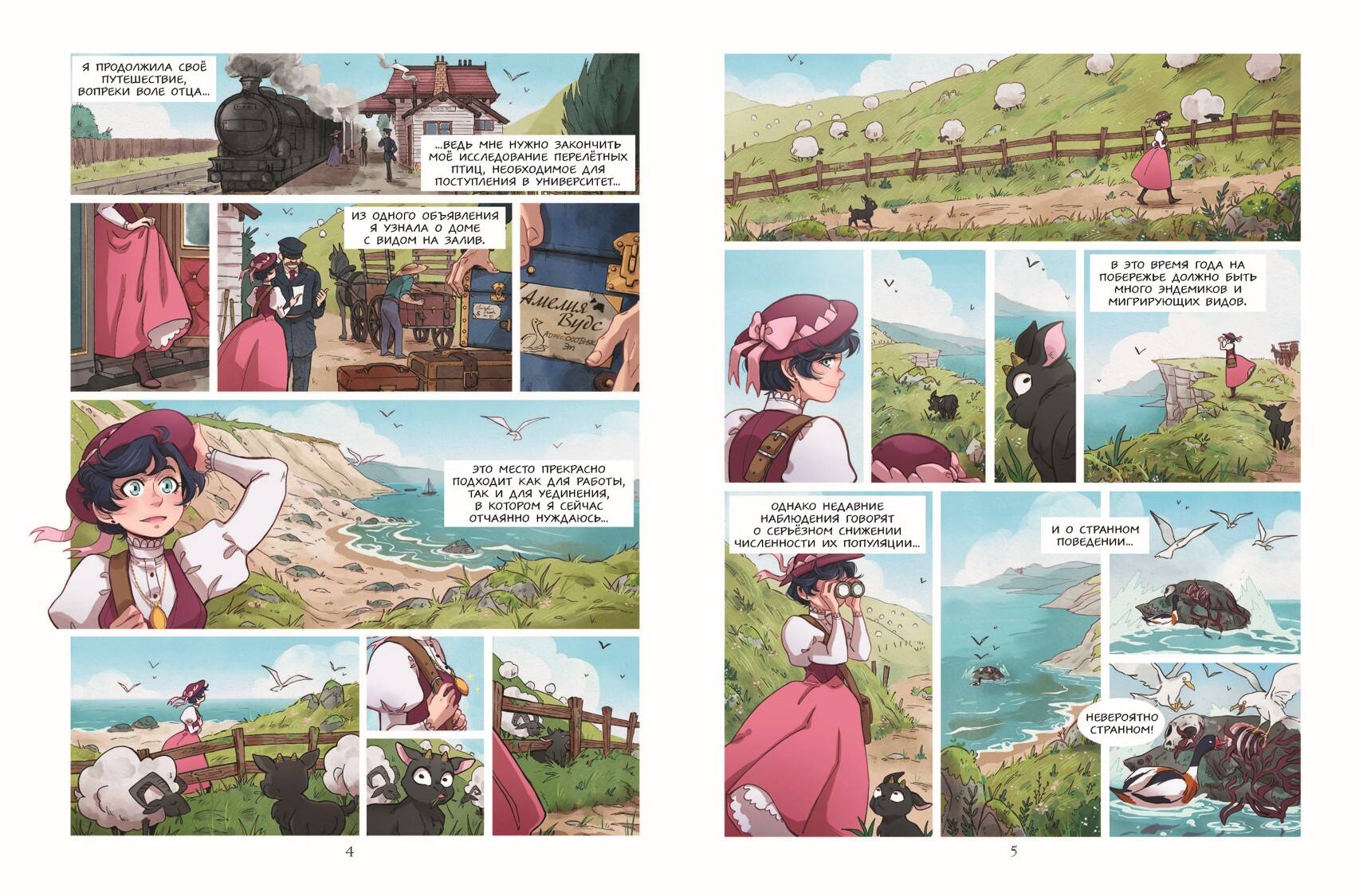 Завораживающий комикс, наполненный мистикой и волшебством. Английский городок на побережье, тихий гостевой домик с видом на залив - отличное место для изучения перелётных птиц. Но Амелия выбрала особняк леди Эм не только по этой причине: девушке нужно время, чтобы прийти в себя после потери близкого человека. Леди Эм - эксцентричная женщина, увлекающаяся спиритизмом. Ходят слухи, что её особняк населяют призраки. Амелию подобным не напугать, ведь молодая девушка занимается наукой, стремится поступить в университет и не поддаётся викторианским суевериям. Однако уже в начале пребывания Амелии в особняке начинает твориться что-то странное: один из обитателей пропадает, а девушку мучают удивительно реалистичные кошмары. Амелия скоро узнает, что не только в особняке леди Эм полно загадок. История её семьи пронизана тайнами, связанными с магией. Чтобы покинуть особняк живой, девушке придётся принять иррациональную часть своей жизни и раскрыть секреты прошлого своей матери.| Издательство | ООО "Издательство "Эксмо" |