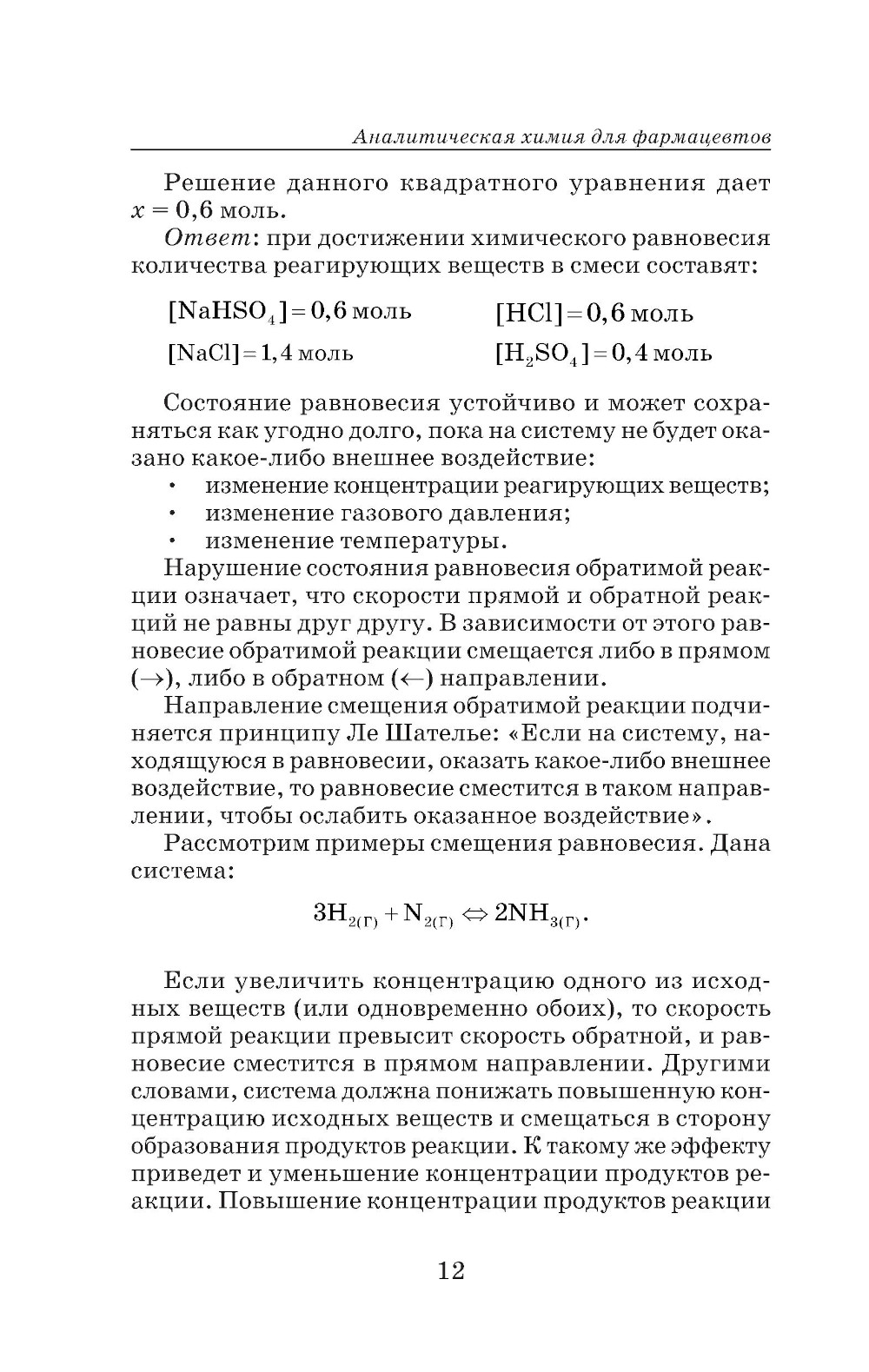 Учебное пособие подготовлено в соответствии с требованиями Федерального государственного образовательного стандарта среднего профессионального образования по специальности 33.02.01 "Фармация". Учебное пособие содержит изложение теоретических основ данной науки с учетом современных тенденций развития. Лабораторному практикуму по обнаружению индивидуальных ионов и анализу смеси ионов предшествует теоретическое введение, содержащее тот минимум знаний, который должен получить студент, так как аналитические определения основаны на знании закономерностей протекания химических процессов в растворе. В конце каждой главы пособия приведены вопросы и задачи, решение которых должно способствовать более глубокому изучению материала и организации самостоятельной работы студентов.| Издательство | Феникс |