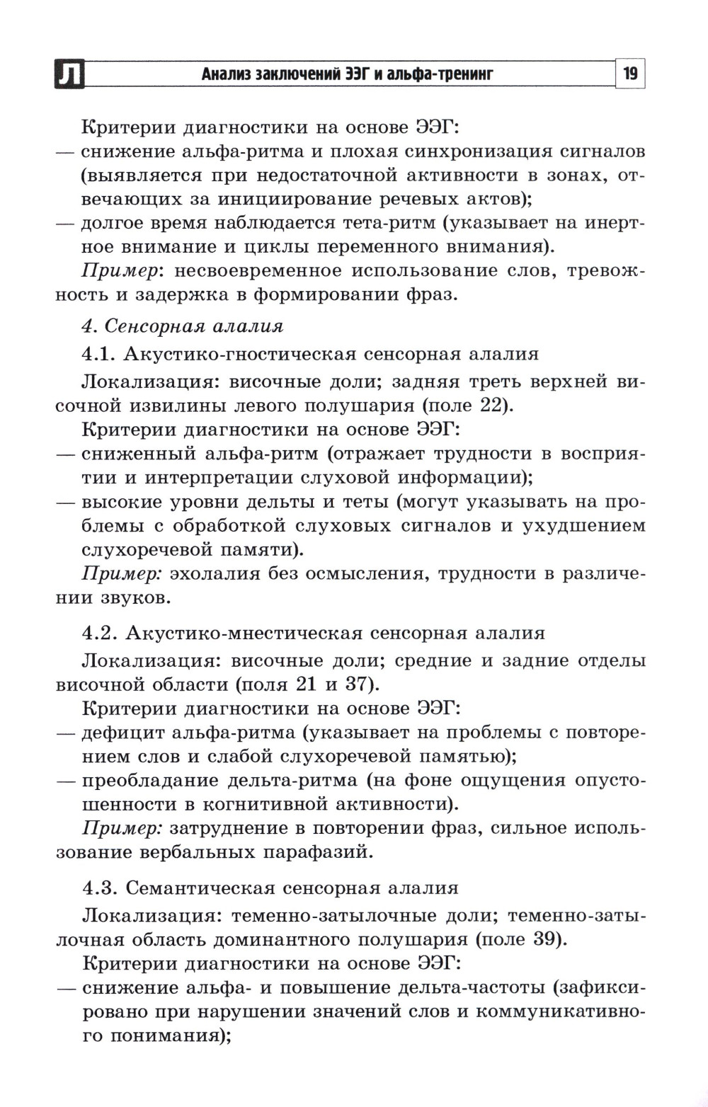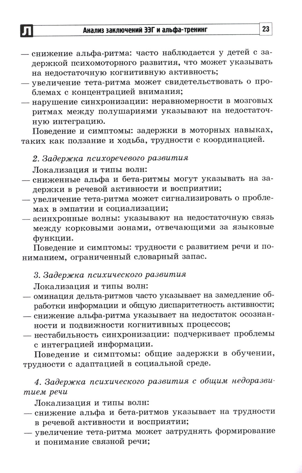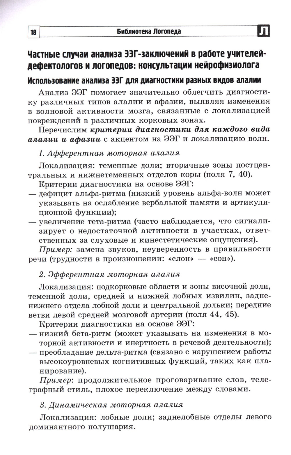 Аннотация: Анализ заключений ЭЭГ и альфа-тренинг в работе нейропсихолога, дефектолога и логопеда. Ч. 1