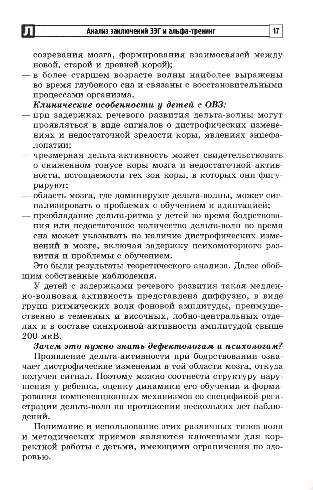 Анализ заключений ЭЭГ и альфа-тренинг в работе нейропсихолога, дефектолога и логопеда. Ч. 1