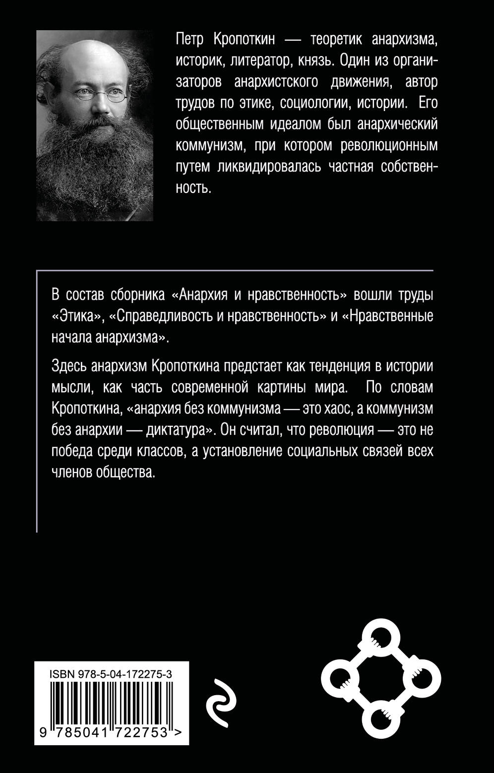 В состав сборника «Анархия и нравственность» вошли труды «Этика», «Справедливость и нравственность» и «Нравственные начала анархизма». В своих философских воззрениях Кропоткин был последователем Огюста Конта и Герберта Спенсера. Этика имеет колоссальное значение в учении Кропоткина, без развитой этики не может быть анархии.| Издательство | ООО "Издательство "Эксмо" |