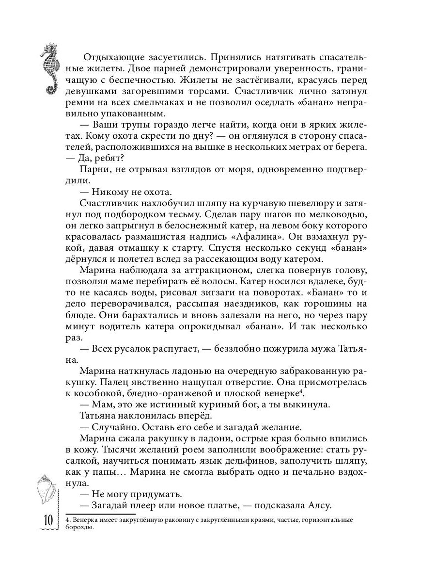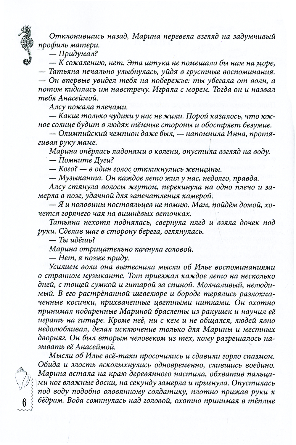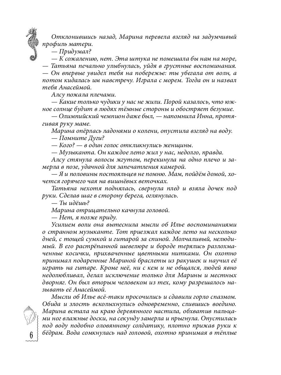 Они повстречались, будучи детьми. За возможность называть выросшую на берегу Чёрного моря Марину звучным прозвищем Анасейма Илья поплатился зубом и душевным покоем. Но приручить морскую волну - задача невыполнимая... А Марина была с морем единым целым, жила им, дышала. Верила в волшебство, здоровалась с прибоем и загадывала желание каждый раз, как находила особенную ракушку. Одна из трёх дочерей Счастливчика, трёх «русалочек», она не представляла, как это - жить вдали от моря, не ощущать его в каждом вдохе. Но сможет ли любовь к человеку победить страсть к стихии? Смогут ли Илья и Марина, пережив череду испытаний и ошибок, простить друг друга и быть вместе, несмотря на боль и обиды?| Издательство | Т8 RUGRAM |