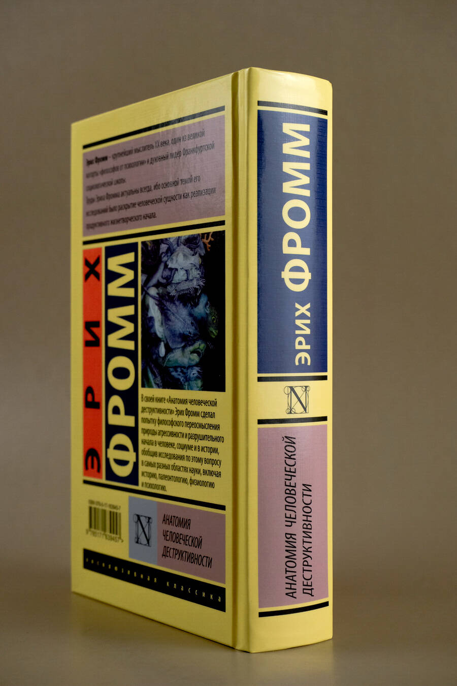 В своей книге "Анатомия человеческой деструктивности" Эрих Фромм сделал попытку философского переосмысления природы агрессивности и разрушительного начала в человеке, социуме и в истории, обобщив исследования по этому вопросу в самых разных областях науки, включая историю, палеонтологию, физиологию и психологию.| Издательство | Издательство "АСТ" |