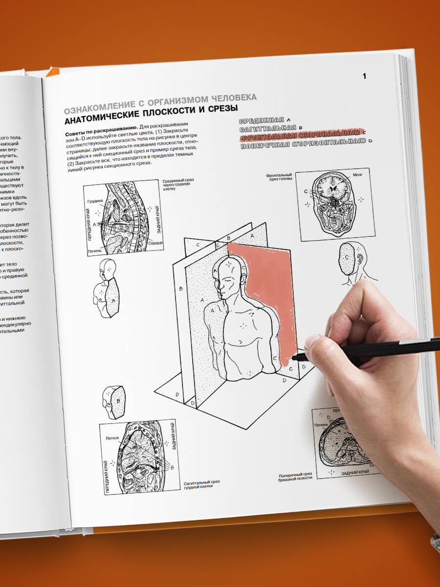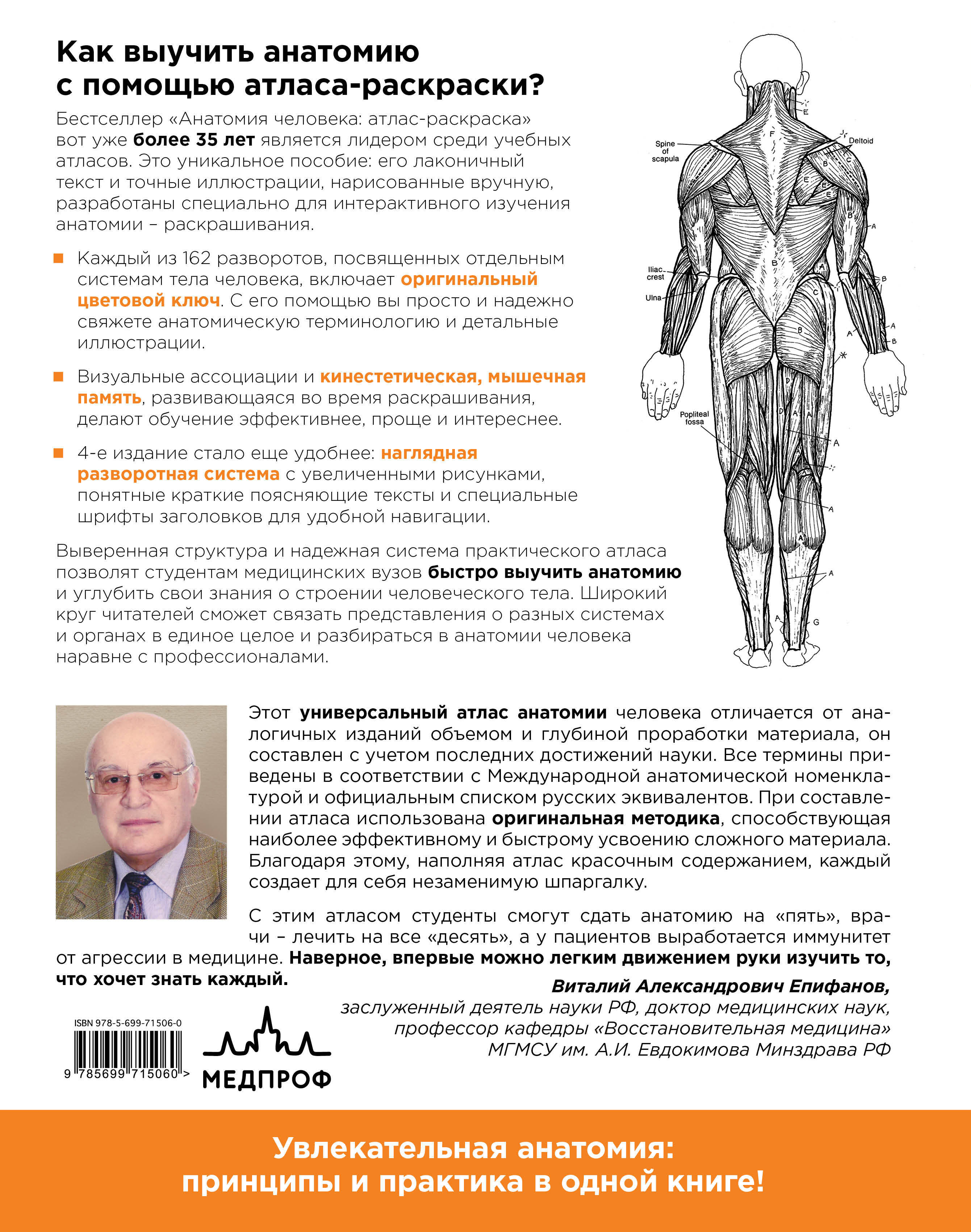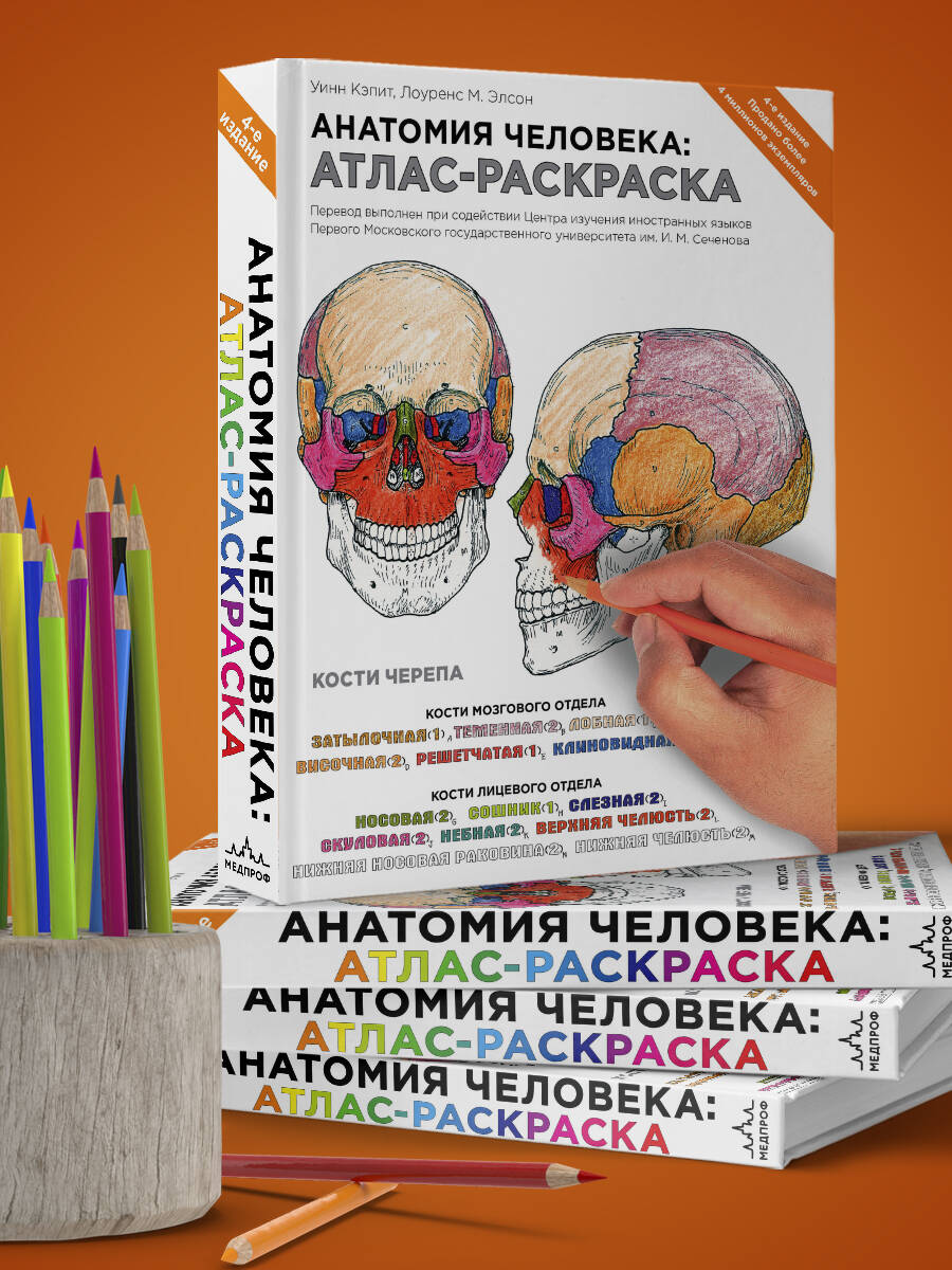 Впервые в России выходит уникальное издание, которое уже более 35 лет является признанным лидером среди анатомических атласов во всем мире. Чем же он завоевал мир? Ответ прост, как сама книга: это первый практический атлас анатомии человека. Он содержит специально прорисованные схемы. Все системы и органы до мельчайших деталей подписаны, а также при помощи простой буквенно-цифровой системы связаны с названиями. Раскрасьте их - и вы создадите свой атлас, параллельно же весело проведете время и выучите анатомию. Пожалуй, нет ничего проще и увлекательнее раскраски. И уж точно нет ничего надежнее, чем сочетание нескольких видов памяти: 1. Аудиальная память: раскрашивая названия структур, вы тщательно проговариваете их по буквам. 2. Визуальная память - вы включаете ее постепенно, по мере появления красок на анатомической картинке. 3. Кинестетическая память - легкие движения вашей руки с карандашом накрепко впечатывают схемы в мозг. Советы по раскрашиванию и уникальный цветовой ключ наглядно покажут вам, как сочетать приятное с полезным. Результат и моральное удовлетворение гарантированы.| Издательство | ООО "Издательство "Эксмо" |