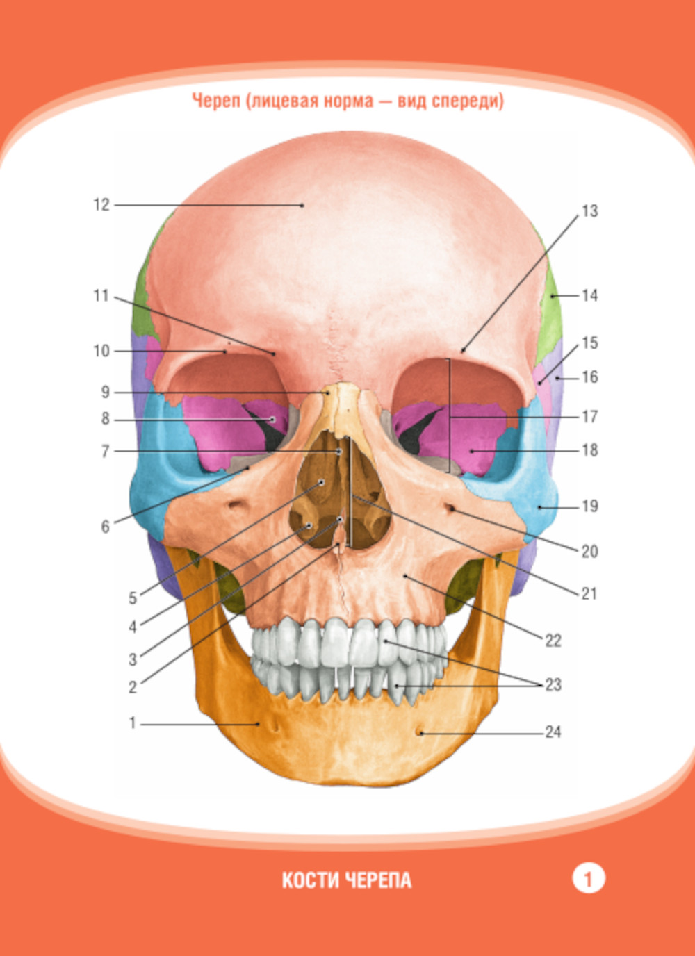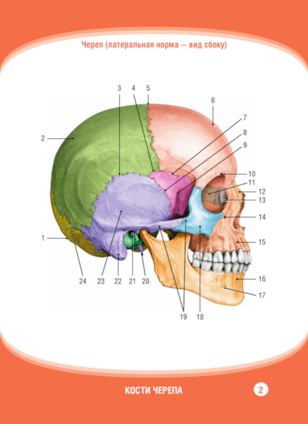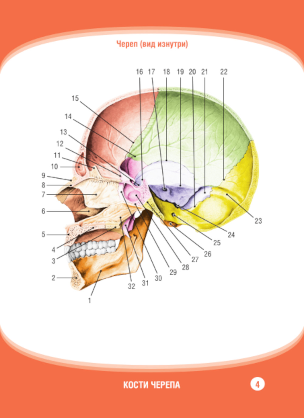 Анатомия человека. Кости черепа. Карточки + кольцо для стяжки карточек: наглядное учебное пособие