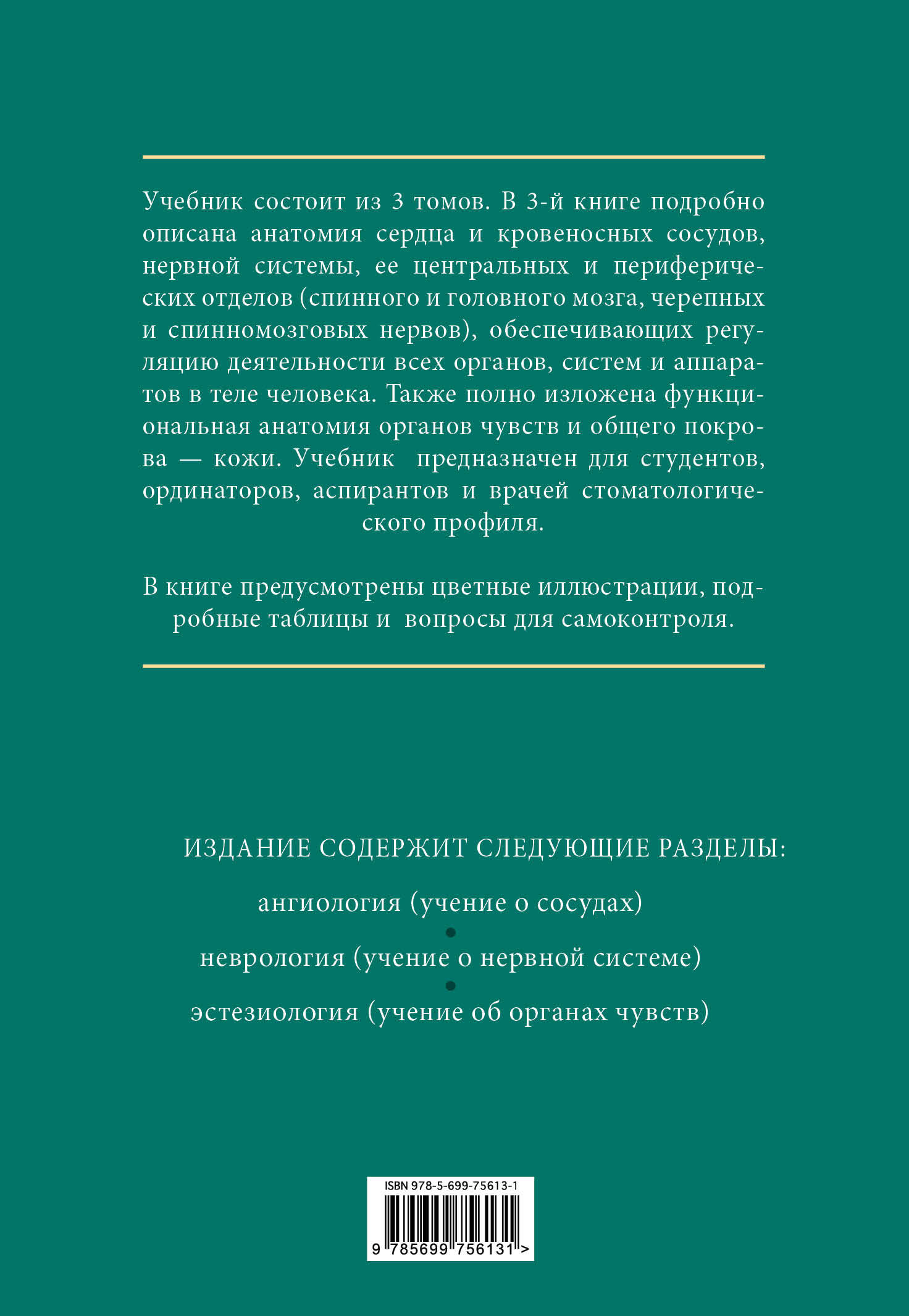 Анатомия человека. Учебник для студентов стоматологических факультетов в 3-х т. т. Том3
