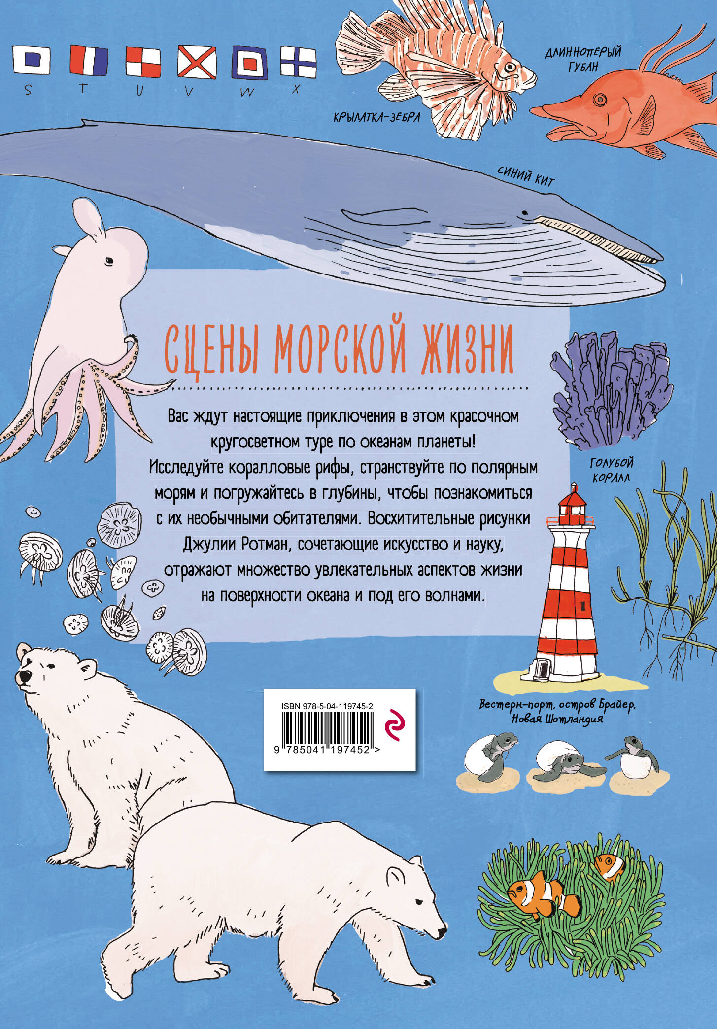 Вас ждут настоящие приключения в этом красочном кругосветном туре по океанам планеты! Исследуйте коралловые рифы, странствуйте по полярным морям и погружайтесь в глубины, чтобы познакомиться с их необычными обитателями. Восхитительные рисунки Джулии Ротман, сочетающие искусство и науку, отражают множество увлекательных аспектов жизни на поверхности моря и под его волнами.| Издательство | ООО "Издательство "Эксмо" |