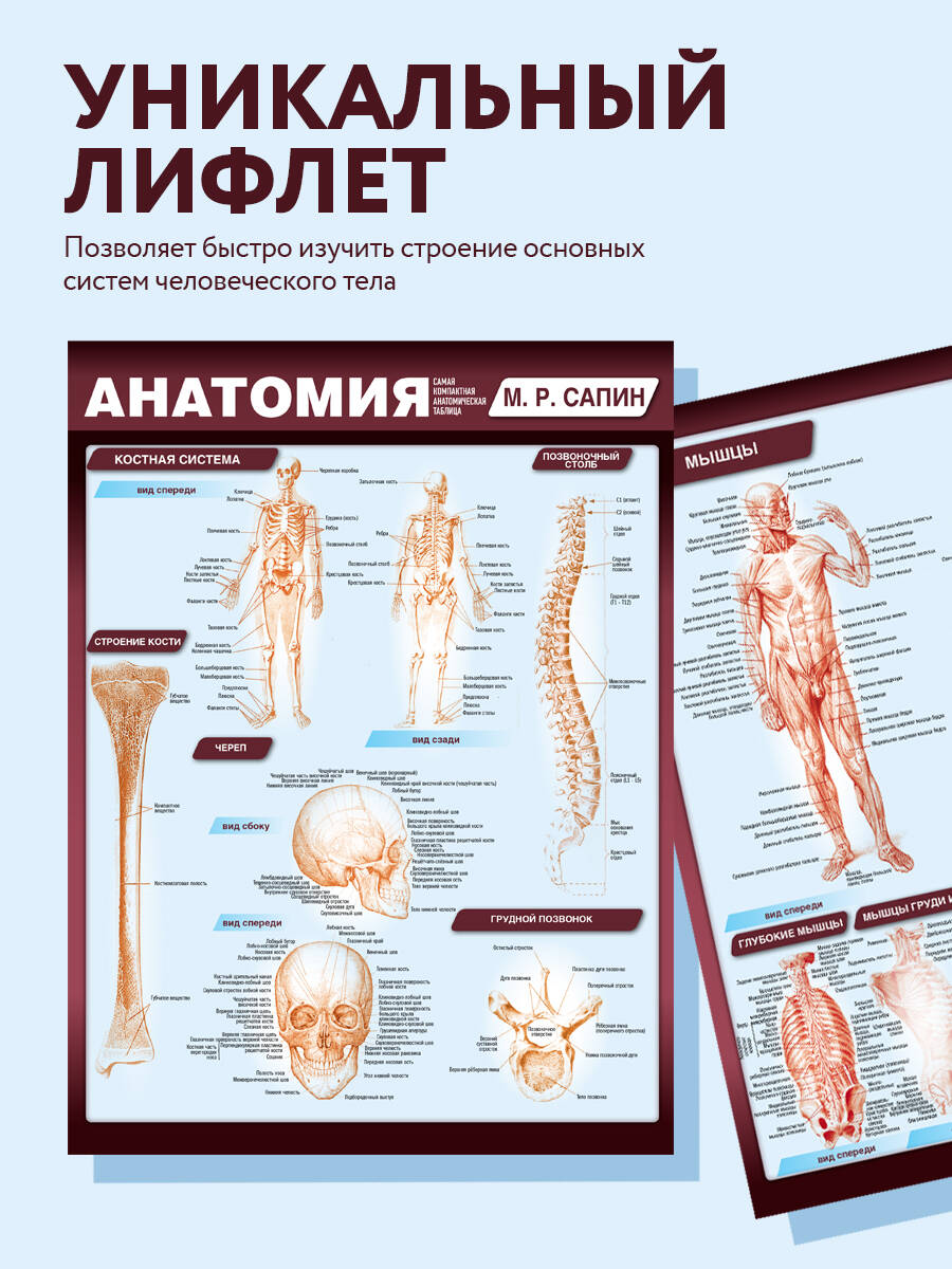 На 6 полосах собраны все основные анатомические структуры человеческого тела. Вы познакомитесь с костной, мышечной, нервной, пищеварительной, выделительной системой, узнаете строение органов слуха, зрения и осязания. И все это в удобном формате и по доступной цене.| Издательство | ООО "Издательство "Эксмо" |