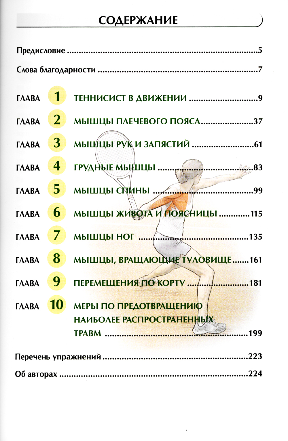 Книга содержит 72 эффективных упражнения с подробными описаниями и анатомическими иллюстрациями работы мышц. Иллюстрации демонстрируют, какие мышцы активно работают при выполнении форхендов, бэкхендов, ударов над головой с отскока и с лета, а также подач, и ясно дают понять, каким образом каждое из упражнений напрямую связано с игрой. Для широкого круга читателей.| Издательство | Попурри |