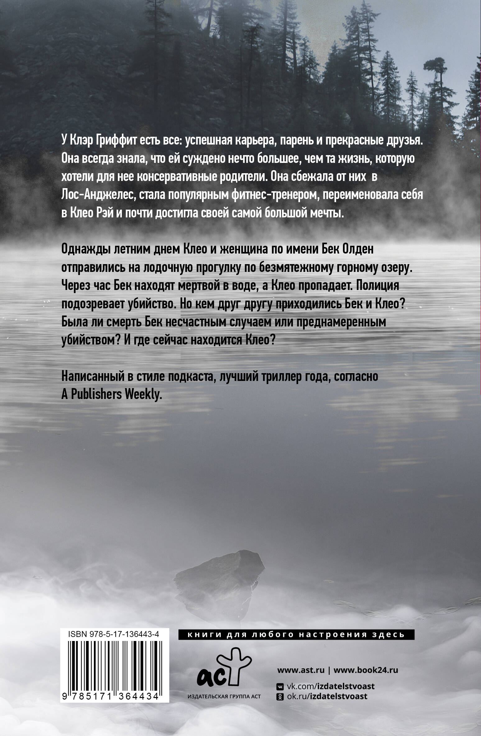 У Клэр Гриффит есть все: успешная карьера, парень и прекрасные друзья. Она всегда знала, что ей суждено нечто большее, чем та жизнь, которую хотели для нее консервативные родители. Она сбежала от них Лос-Анджелес, стала популярным фитнес-тренером, переименовала себя в Клео Рэй и почти достигла своей самой большой мечты. Однажды летним днем Клео и женщина по имени Бек Олден отправились на лодочную прогулку по безмятежному горному озеру. Через час Бек находят мертвой в воде, а Клео пропадает. Полиция подозревает убийство. Но кем друг другу приходились Бек и Клео? Была ли смерть Бек несчастным случаем или преднамеренным убийством? И где сейчас находится Клео?| Издательство | Издательство "АСТ" |