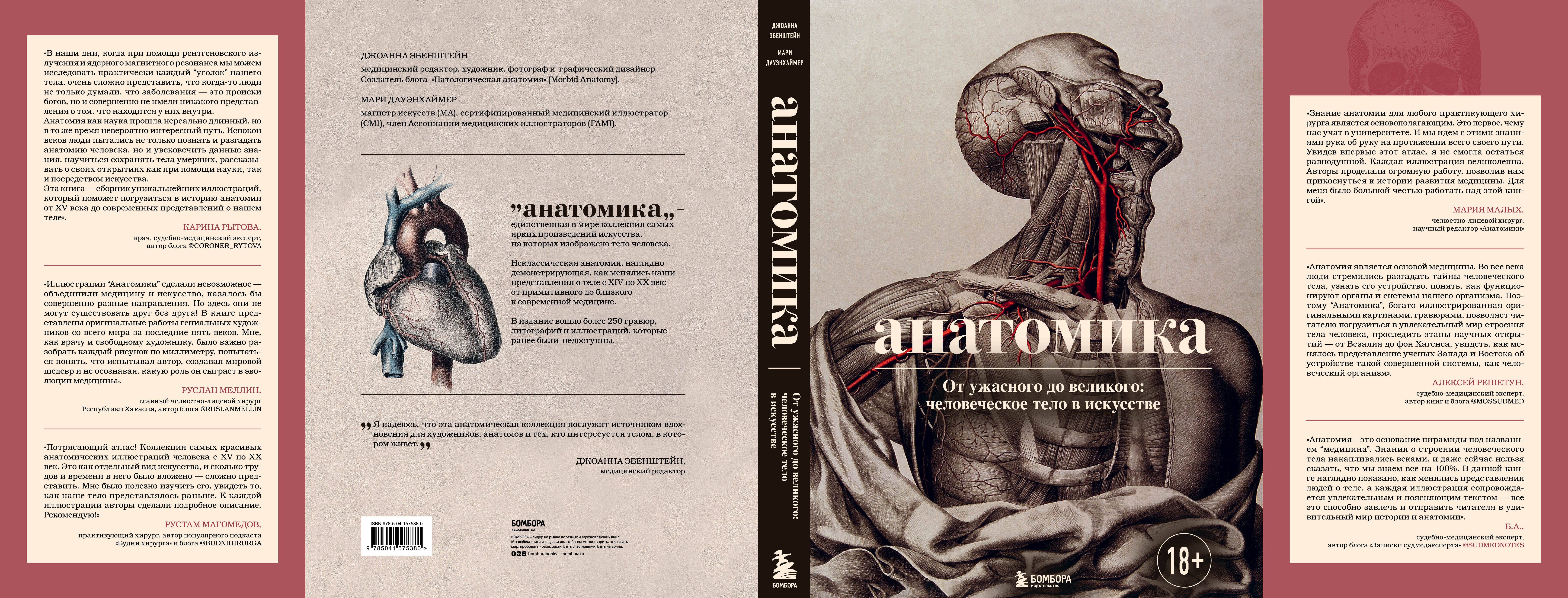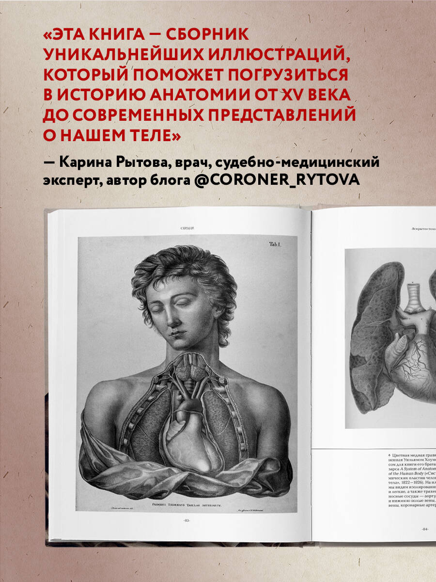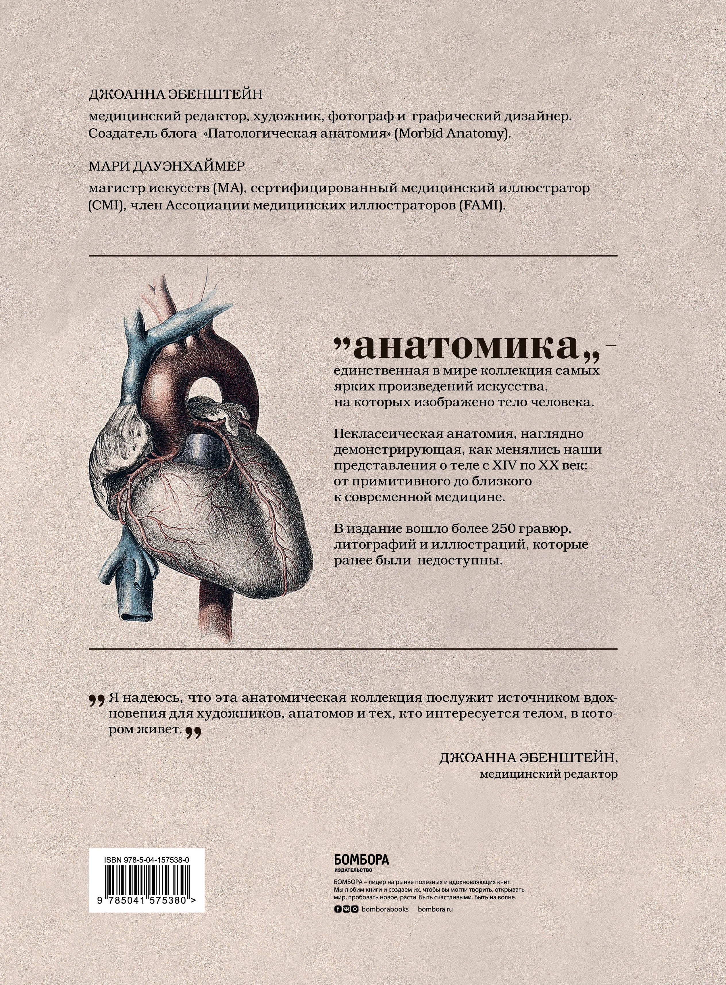 Первая известная книга по анатомии была написана около 300 года до н.э. греческим философом и врачом Диоклом, который опирался на свои исследования о вскрытии животных. В дальнейшем работа Андреаса Везалия «О строении человеческого тела» 1543 года стала первым крупным исследованием, основанным на вскрытии человеческих трупов. Оно в свое время развеяло многие мифы и бросило вызов Галенскому учению, которое являлось неоспоримым в течение сотен лет. Таким образом, на протяжении веков изучение анатомии было важной частью развития врачебной практики. Джоанна Эбенштейн, автор книги «Анатомика», - независимый ученый, эксперт и фотограф. Это необычное издание содержит иллюстрации анатомической структуры и изображения трупов, вскрытий и экорше (скульптур, показывающих фигуру человека с открытой мышечной структурой - без кожи). Представленные иллюстрации взяты из различных источников и охватывают несколько столетий, каждая из них сопровождается подробными комментариями и примечаниями. Отдельные главы книги посвящены всему телу человека, вскрытию и конкретным анатомическим системам. Автор делится с читателями своим обширным опытом, кратко рассказывая об исторических истоках этих поразительных исследований. «Знание анатомии для любого практикующего хирурга является основополагающим. Это первое, чему нас учат в университете. И мы идем с этими знаниями рука об руку на протяжении всего своего пути. Увидев впервые этот атлас, я не смогла остаться равнодушной. Каждая иллюстрация великолепна. Авторы проделали огромную работу, позволив нам прикоснуться к истории развития медицины. Для меня было большой честью работать над этой книгой». - Мария Малых, челюстно-лицевой хирург, научный редактор «Анатомики» «Анатомия является основой медицины. Во все века люди стремились разгадать тайны человеческого тела, узнать его устройство, понять, как функционируют органы и системы нашего организма. Поэтому "Анатомика", богато иллюстрированная оригинальными картинами, гравюрами, позволяет читателю погрузиться в увлекательный мир строения тела человека, проследить этапы научных открытий - от Везалия до фон Хагенса, увидеть, как менялось представление ученых Запада и Востока об устройстве такой совершенной системы, как человеческий организм». - Алексей Решетун, судебно-медицинский эксперт, автор книг и популярного блога «Анатомия - это основание пирамиды под названием "медицина". Знания о строении человеческого тела накапливались веками, и даже сейчас нельзя сказать, что мы знаем все на 100%. В данной книге наглядно показано, как менялись представления людей о теле, а каждая иллюстрация сопровождается увлекательным и поясняющим текстом, - все это способно завлечь и отправить читателя в удивительный мир истории и анатомии». - Б.А., судебно-медицинский эксперт, автор блога «Записки судмедэксперта» «В наши дни, когда при помощи рентгеновского излучения и ядерного магнитного резонанса мы можем исследовать практически каждый "уголок" нашего тела, очень сложно представить, что когда-то люди не только думали, что заболевания - это происки богов, но и совершенно не имели никакого представления о том, что находится у них внутри. Анатомия как наука прошла нереально длинный, но в то же время невероятно интересный путь. Испокон веков люди пытались не только 