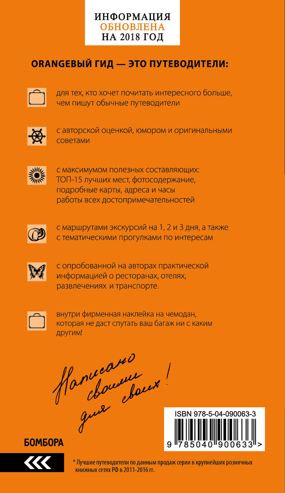 Новое издание путеводителя по Андалусии! Новинка 2018 года - яркая наклейка на чемодан! Андалусия - регион для тех, кто хочет чего-то большего, чем просто Испания. Оранжевый гид - путеводитель для тех, кто хочет чего-то большего, чем просто путеводитель. С толком и расстановкой автор расскажет вам об этой самой южной и самой веселой области страны. Вы познакомитесь с необычайными праздниками и традициями, зажигательными круглогодичными фиериями и приветливым населением. В самых аутентичных «питательных» заведениях вы будете потягивать великолепное вино, отведаете лучшие местные кулинарные достижения. Насладитесь неповторимой природой, заботливо преображенной в национальные парки. Оранжевый гид авторитетно скажет вам, что Андалусия - земля с богатым прошлым и ее главные культурные памятники и архитектурные ансамбли прошлых времен сохранились и по сей день. Полностью обновленный путеводитель по солнечной Андалусии - интересные маршруты поездок по городам, красочные фотографии, актуальная практическая информация, подробные карты 1,2,3-дневных и отдельных тематических маршрутов! Внутри вы найдете уникальную фирменную наклейку на чемодан... теперь ваш багаж не спутать ни с каким другим! Отправляйтесь в путешествие вместе с Оранжевым гидом, который сделает ваш чемодан уникальным, а отпуск незабываемым!| Издательство | ООО "Издательство "Эксмо" |