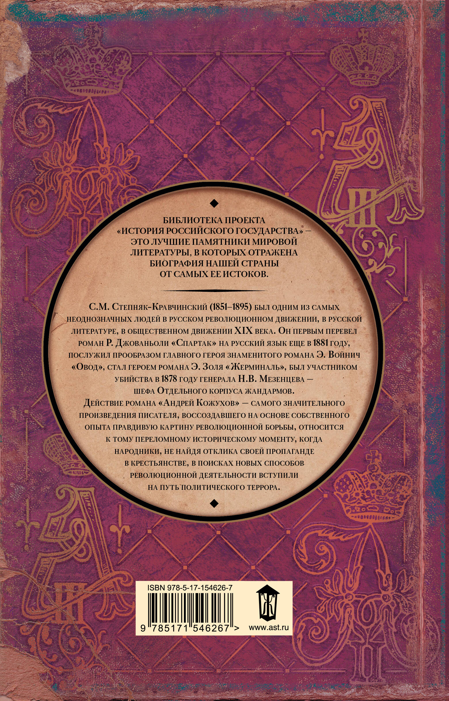 Библиотека проекта "История Российского государства" - это рекомендованные Борисом Акуниным лучшие памятники мировой литературы, в которых отражена биография нашей страны от самых ее истоков. С.М. Степняк-Кравчинский (1851-1895) был одним из самых неоднозначных людей в русском революционном движении, в русской литературе, в общественном движении XIX века. Он первым перевел роман Р. Джованьоли "Спартак" на русский язык еще в 1881 году, послужил прообразом главного героя знаменитого романа Э. Войнич "Овод", стал героем романа Э. Золя "Жерминаль", был участником убийства в 1878 году генерала Н.В. Мезенцева - шефа Отдельного корпуса жандармов. Действие романа "Андрей Кожухов" - самого значительного произведения писателя, воссоздавшего на основе собственного опыта правдивую картину революционной борьбы, относится к тому переломному историческому моменту, когда народники, не найдя отклика своей пропаганде в крестьянстве, в поисках новых способов революционной деятельности вступили на путь политического террора.| Издательство | ИЗДАТЕЛЬСТВО "АСТ" |