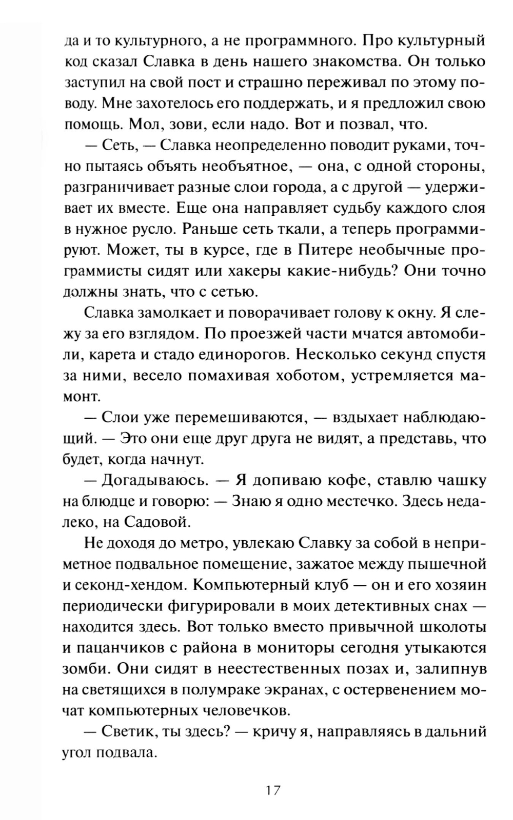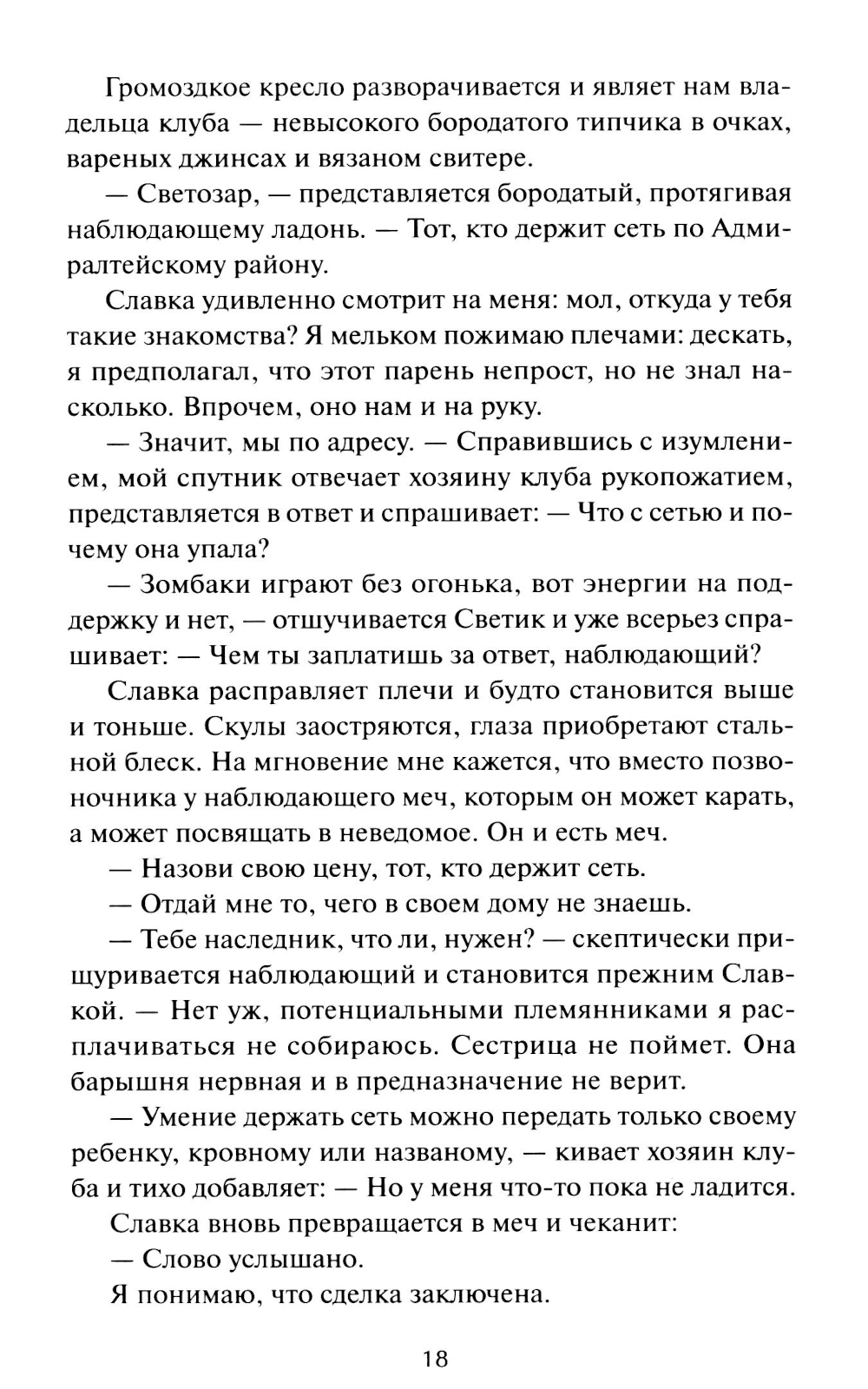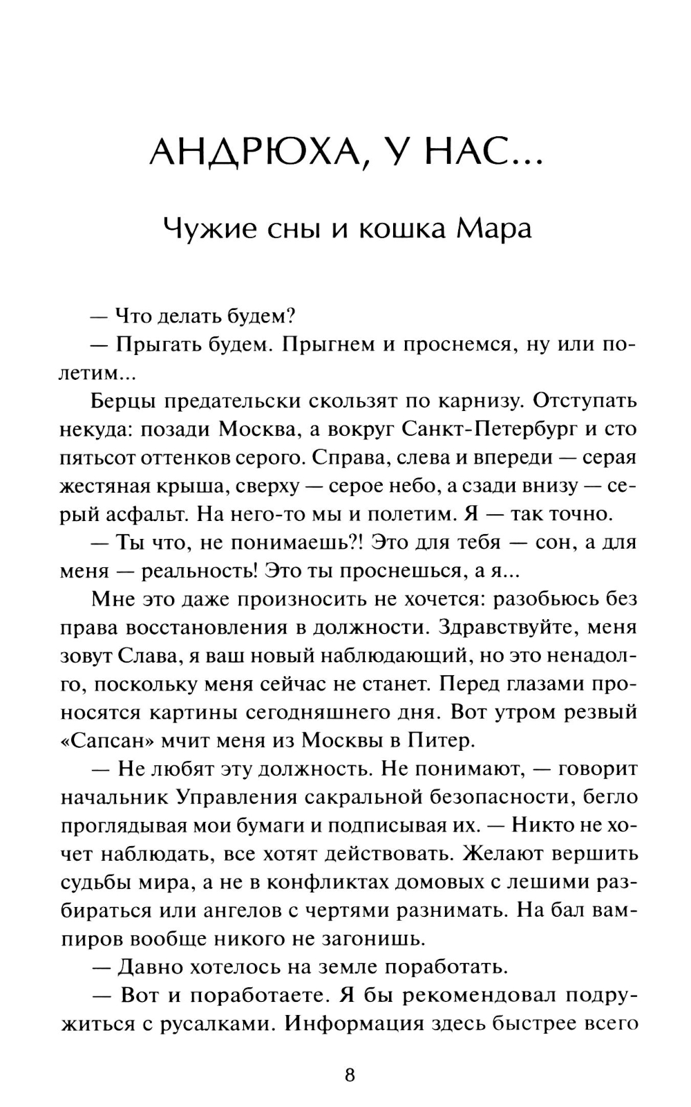 Санкт-Петербург, как и любой другой город, состоит из множества слоев - от плотной человеческой реальности до легенд, снов и фантазий. Здесь можно встретить сбежавшего каменного сфинкса, посетить бал вампиров, разделить бизнес-ланч с Пиковой дамой, пройтись по мосту-оборотню и поболтать с русалками на набережной. Хранить хрупкое равновесие между слоями призваны «наблюдающий» - Славка и его помощник Андрюха - персонаж и культурный код. Их служба полна как серьезных опасностей, так и настоящих чудес, но пока напарники вместе - Петербургу быть.| Издательство | Манн, Иванов и Фербер |
