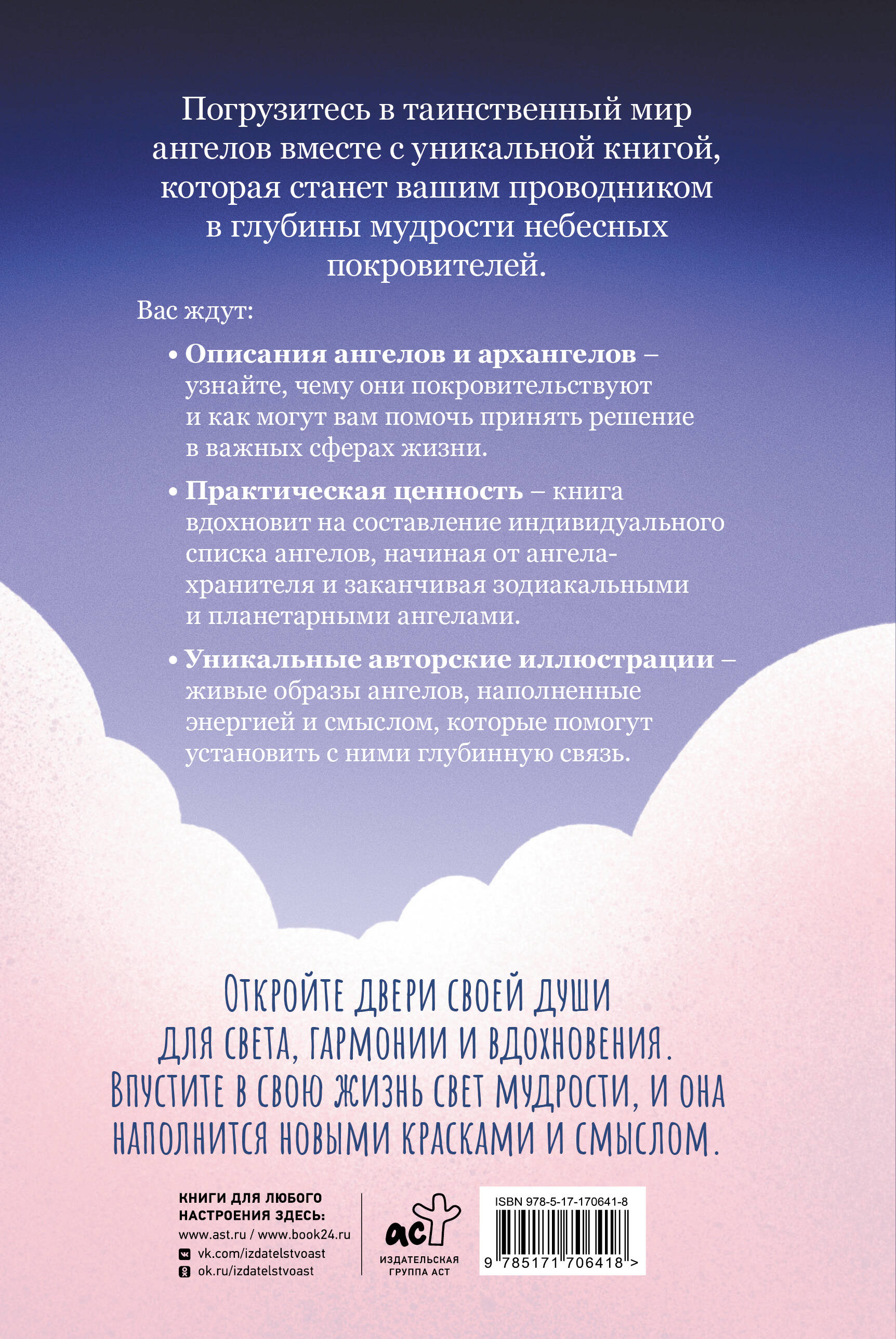 Погрузитесь в таинственный мир ангелов вместе с уникальной книгой, которая станет вашим проводником в глубины мудрости небесных покровителей. Вас ждут: • Описания ангелов и архангелов - узнайте, чему они покровительствуют и как могут вам помочь принять решение в важных сферах жизни. • Практическая ценность - книга вдохновит на составление индивидуального списка ангелов, начиная от ангела-хранителя и заканчивая зодиакальными и планетарными ангелами. • Уникальные авторские иллюстрации - живые образы ангелов, наполненные энергией и смыслом, которые помогут установить с ними глубинную связь. Откройте двери своей души для света, гармонии и вдохновения. Впустите в свою жизнь свет мудрости, и она наполнится новыми красками и смыслом.| Издательство | Издательство "АСТ" |