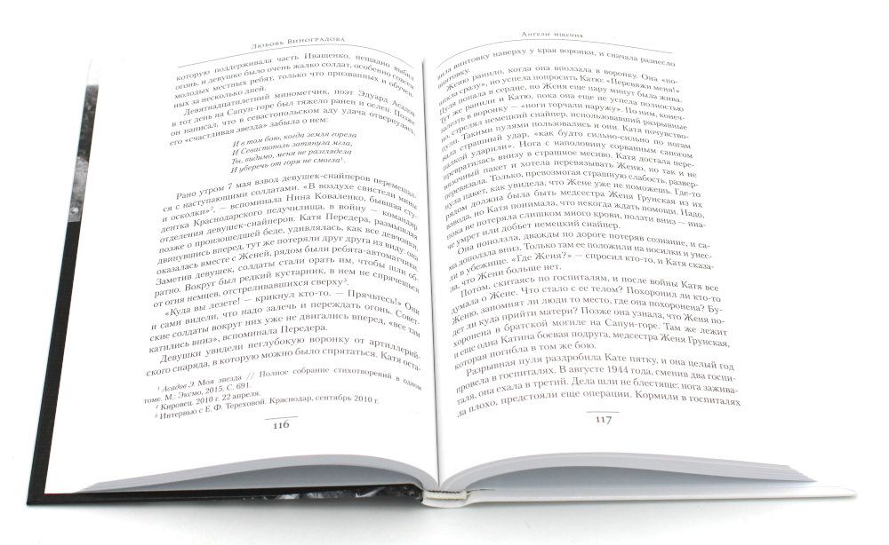 В комплект вошли две книги Любови Виноградовой: «Ангелы мщения» Снайперское движение в Красной армии началось в самые отчаянные, дни войны, осенью 1941-го на Ленинградском фронте. В 1943 году в составе действующей армии появились первые женские снайперские взводы. На счету у многих «ангелов мщения» были десятки убитых врагов. Не всем этим девушкам довелось дожить до конца войны. Те, кому повезло, вернулись, совсем еще молодыми, к жизни обычных советских женщин. И все же главным событием их жизни стала Великая Отечественная. Автор книги Любовь Виноградова работала в архивах, изучала мемуары очевидцев, встречалась с участниками событий и членами их семей. Результатом этого кропотливого труда стало уникальное историко-документальное исследование о вкладе девушек-снайперов в победу в Великой Отечественной. «Защищая Родину» В созданной легендарной советской летчицей Мариной Расковой «Авиачасти № 122» не было мужчин. Все ее воины - летчики, штурманы, техники - вчерашние студентки, работницы фабрик и заводов, воспитанницы аэроклубов, которые встали в строй и прошли долгую дорогу войны до дня Великой Победы. Исследователь Любовь Виноградова работала в архивах, изучала мемуары очевидцев, встречалась с участниками событий и членами их семей. Результатом этого кропотливого труда явилась уникальная историко-документальная книга, в которой детально, с любовью и горечью рассказывается об удивительных девушках, главным событием в жизни которых стала война. У многих героинь книги судьба была короткой и трагической. Свои жизни они отдали за Родину, которую любили и сумели спасти.