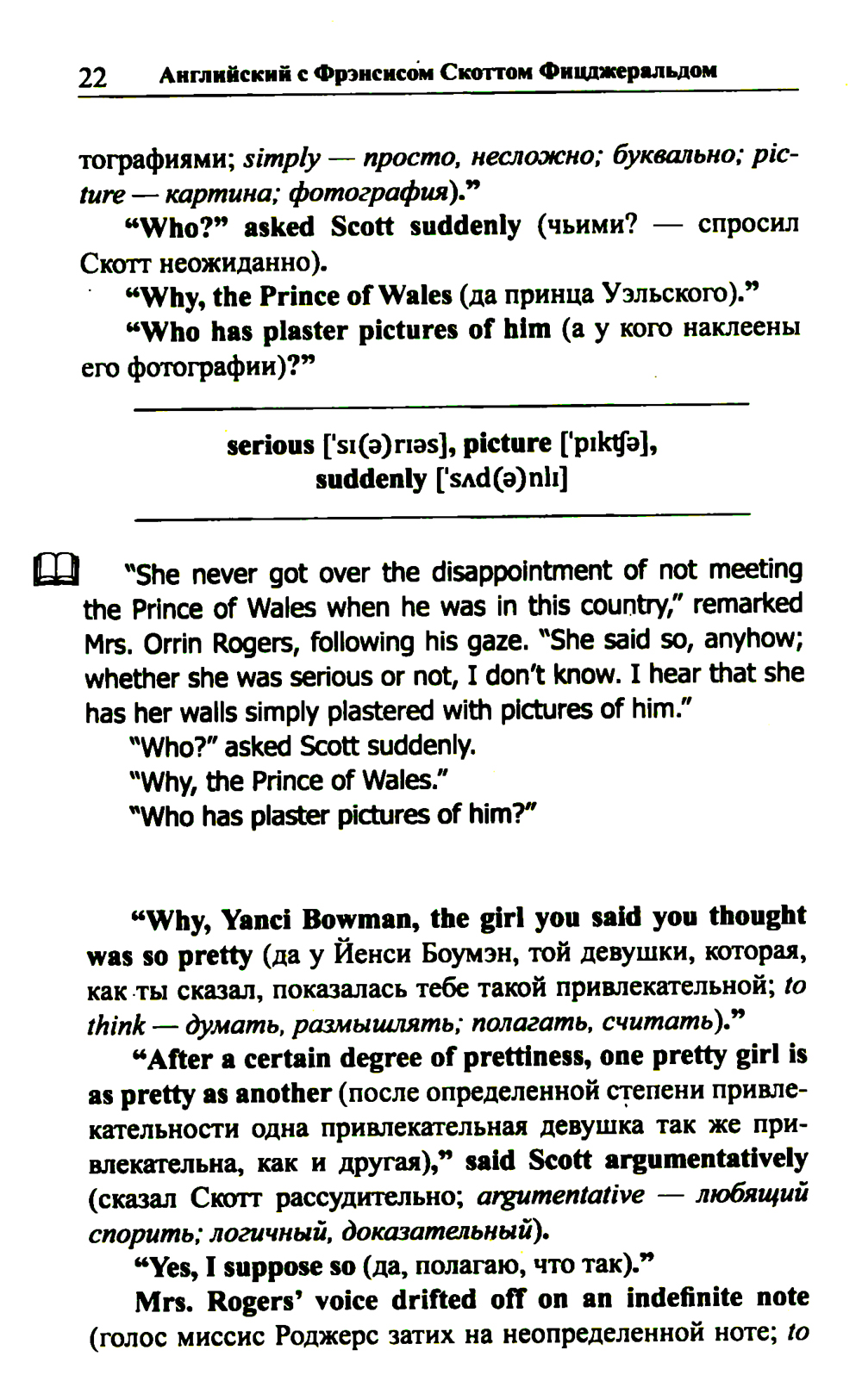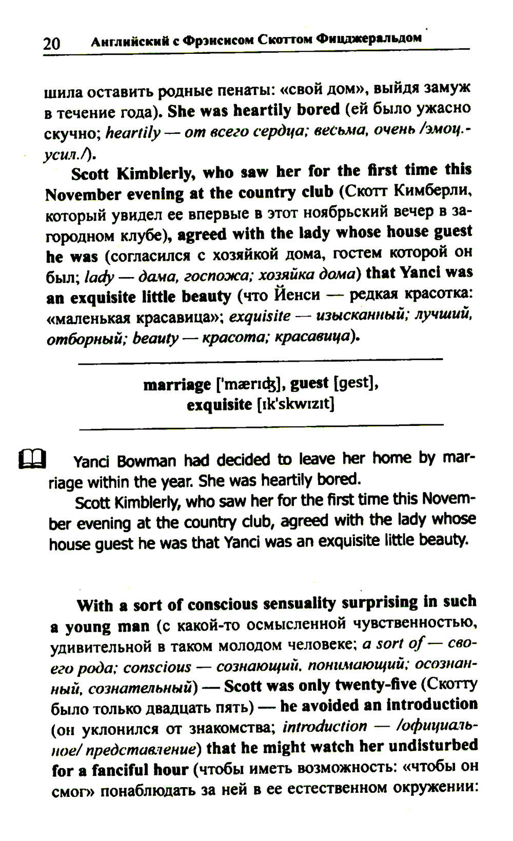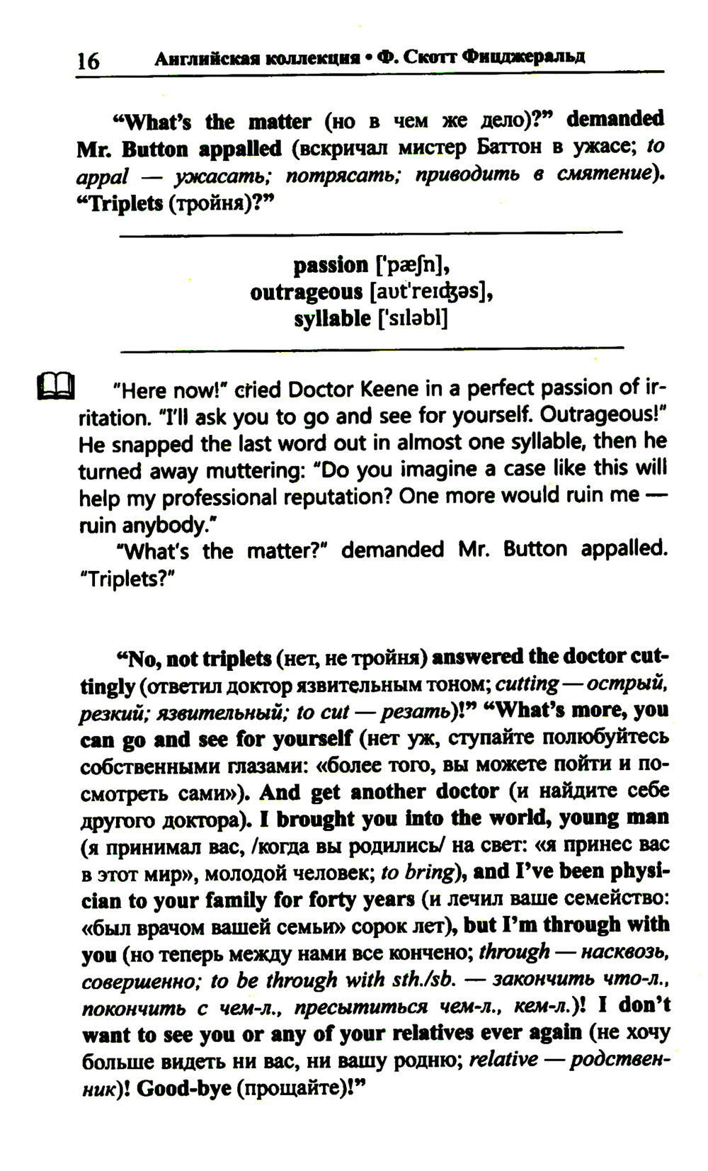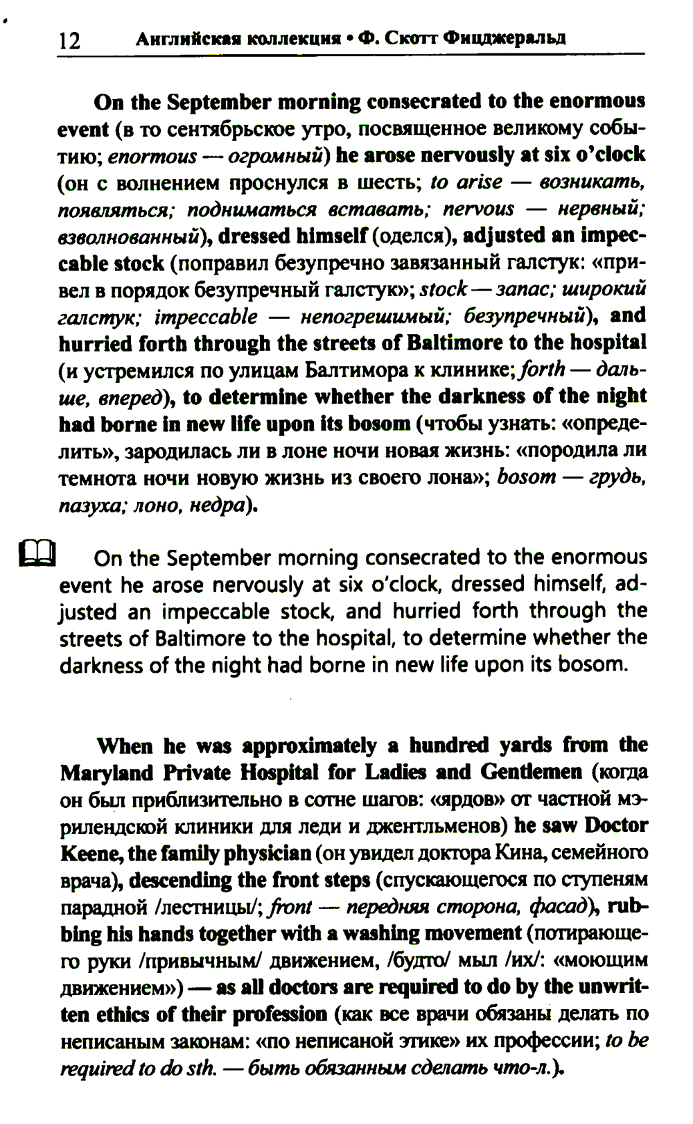 Комплект содержит книги: «Английская коллекция. Ф. Скотт Фицджеральд. Загадочный случай с Бенджаменом Баттоном» Рассказ об одном необъяснимом происшествии, перевернувшем с ног на голову жизнь добропорядочного американского семейства, адаптирован в настоящем издании по методу Ильи Франка: снабжен транскринцией, дословным переводом на русский язык и необходимым лексико-грамматическим комментарием (без упрощения текста оригинала). «Английская коллекция. Ф. Скотт Фицджеральд. Популярная девушка» Одна из самых известных новелл Ф. Скотта Фицджеральда - о девушке, мечтающей найти своего «прекрасного принца», - адаптирована в настоящем издании по методу Ильи Франка: снабжена транскрипцией, дословным переводом на русский язык и необходимым лексико-грамматическим комментарием. Уникальность метода заключается в том, что запоминание слов и выражений происходит за счет их повторяемости, без заучивания и необходимости использовать словарь. Пособия способствуют эффективному освоению языка, может служить дополнением к учебной программе. Для широкого круга лиц, изучающих английский язык и интересующихся культурой англоязычных стран.| Издательство | Восточная книга |