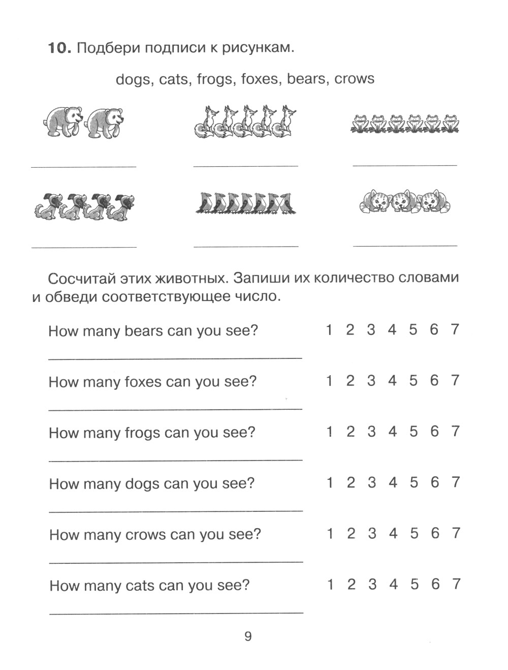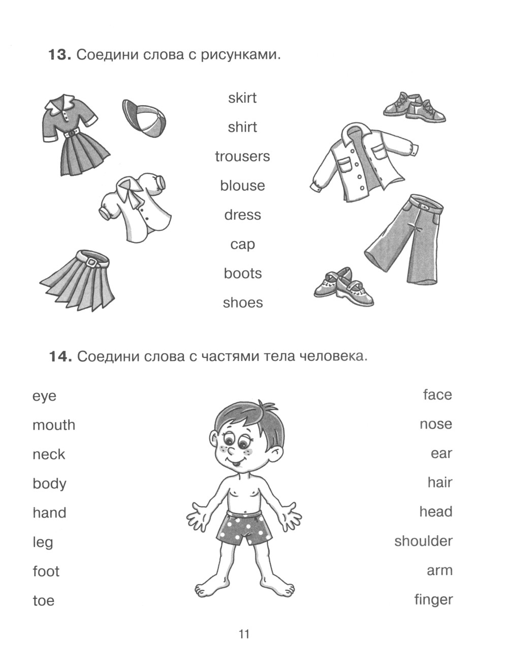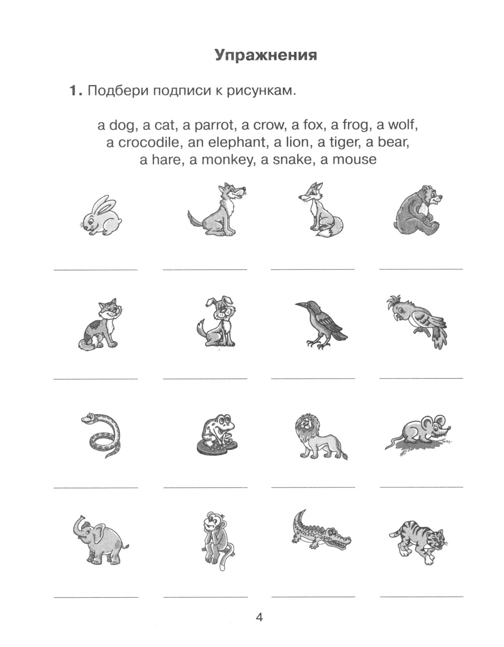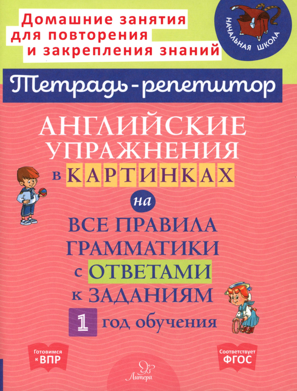 Английские упражнения в картинках на все правила грамматики с ответами к заданиям. 1 год обучения