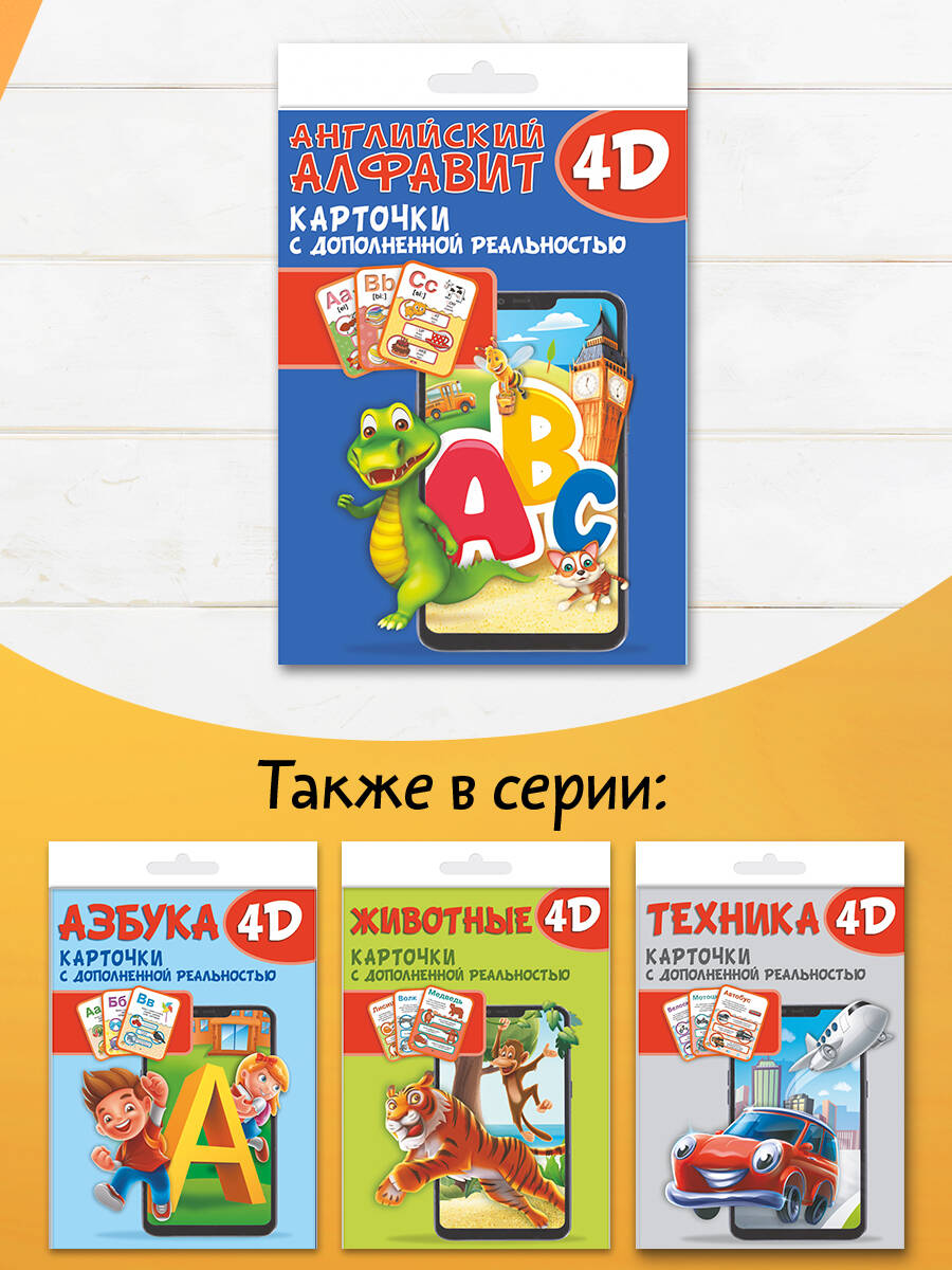 Этот уникальный набор из интерактивных обучающих карточек познакомит ребёнка с буквами и словами английского языка. В ходе увлекательной игры с помощью дополненной реальности малыш с удовольствием начнёт осваивать азы английского языка, сможет запомнить графический образ буквы английского алфавита и услышать, как она правильно произносится. Активируя на экране мобильного устройства кнопки с картинками, ребёнок прослушает и выучит слова английского языка, которые начинаются на эту букву, а также познакомится со счётом до десяти, названиями цветов и форм, времён года и дней недели на английском языке. Чтобы маленький почемучка не заскучал, мы предлагаем ему поиграть с виртуальной моделью, которой он сможет самостоятельно управлять с помощью кнопок с экрана мобильного телефона или планшета. В результате регулярных занятий и игр с этими карточками ребёнку будет по силам запомнить буквы английского алфавита и более сотни слов этого языка с переводом.| Издательство | АСТ |