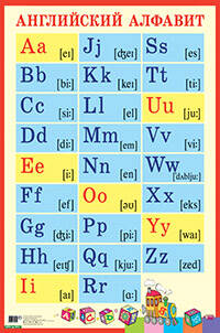 На красочно оформленном плакате помещен английский алфавит с транскрипцией. Гласные буквы отмечены красным цветом.| Издательство | Айрис-пресс Издательство ООО |