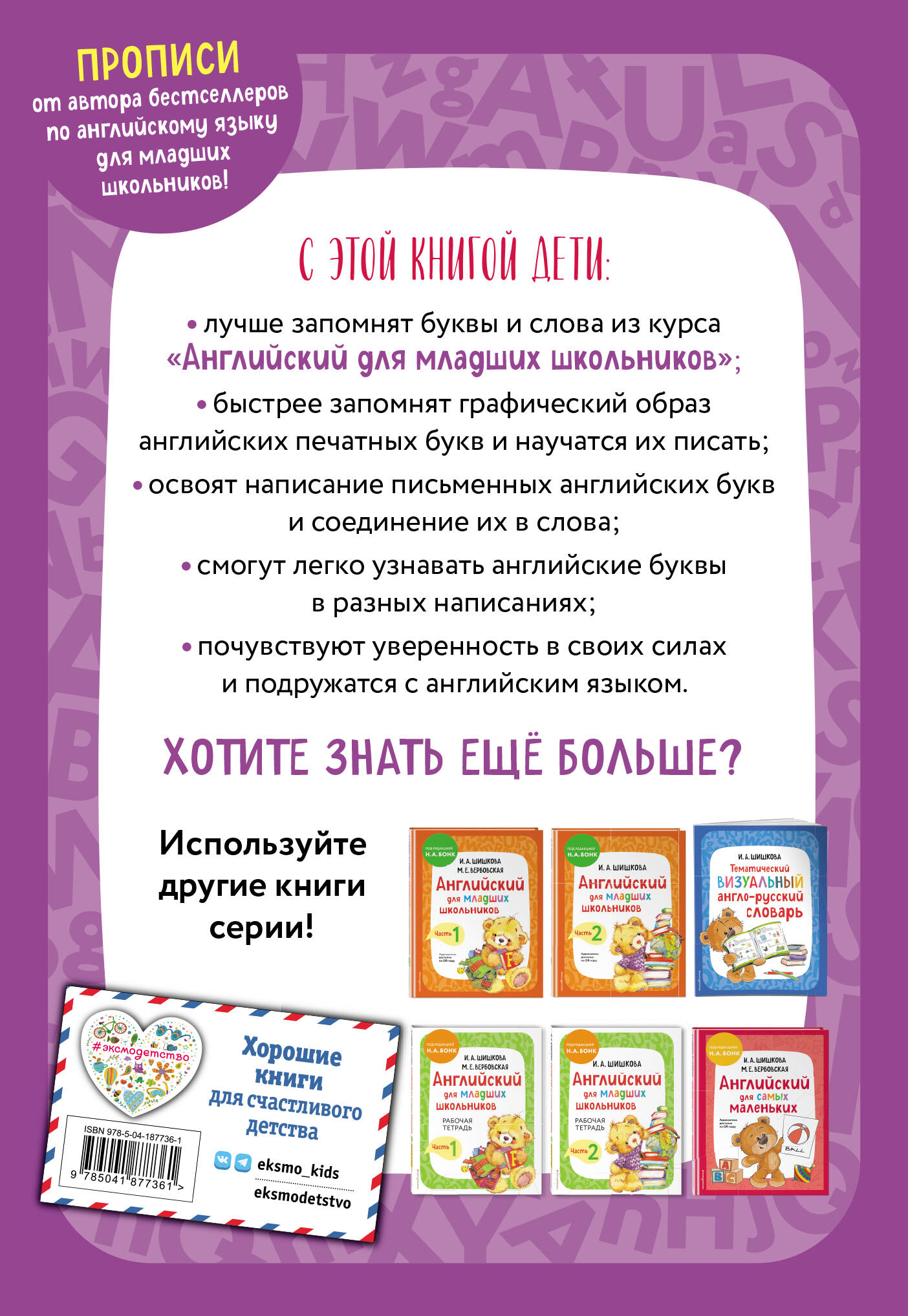 По какому бы учебнику ребенок ни начинал изучение английского, ему в любом случае необходимо запомнить английские буквы, научиться их узнавать и записывать. Эта пропись поможет младшим школьникам скорее развить эти навыки. Чем больше практики, тем быстрее формируется навык! А это значит, что, прописывая английские печатные буквы в рабочей тетради и прописи курса «Английский для младших школьников», ребенок быстрее запомнит буквы, их графические образы и принципы написания. Пропись поможет сделать следующий шаг: научиться писать английские письменные буквы! Это невероятно полезный опыт: так ребенок не только развивает мелкую моторику, но и учится узнавать буквы, даже если они выглядят не совсем привычно. Навык слитного написания слов письменными буквами помогает записывать их быстрее, а это важно, чтобы ничего не упустить. С прописью «Английский для младших школьников» «начинающий» ученик быстро превратится в «продолжающего», уверенного в своих силах и готового раскрывать тайны английского языка!| Издательство | ООО "Издательство "Эксмо" |