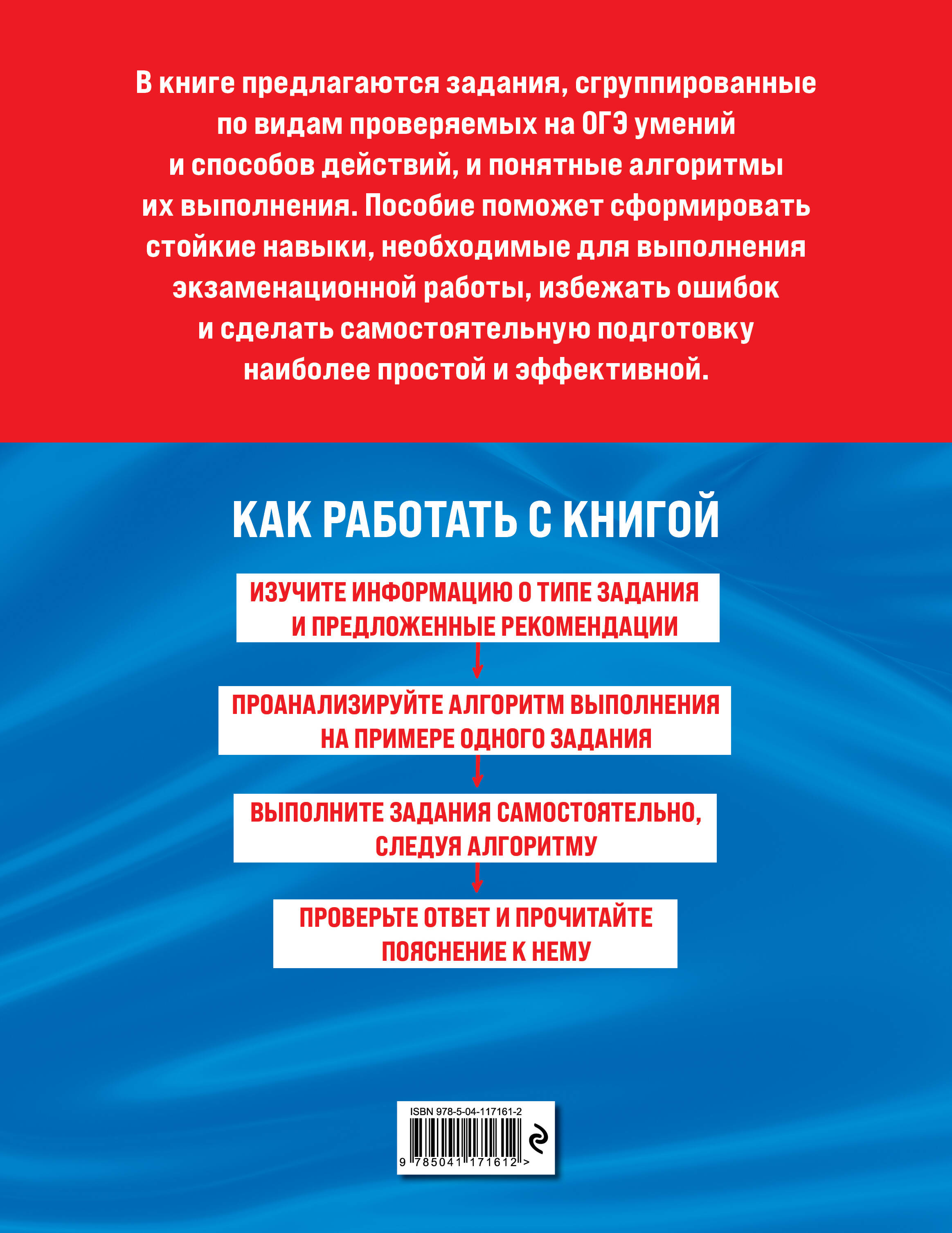 Издание адресовано учащимся 9-х классов для подготовки к ОГЭ по английскому языку и содержит задания, сгруппированные по видам проверяемых умений и способов действий. Приводится информация о каждом типе задания, разбор примеров, тренировочные задания с подробными пояснениями к ответам. Для выполнения заданий раздела «Аудирование» прилагаются аудиозаписи, доступные по ссылке. Пособие поможет учащимся научиться выполнять различные типы заданий вне зависимости от их содержания, а также будет полезно учителям и репетиторам. Чаще всего в учебных пособиях рассказывается, что учить и что делать для успешного выполнения заданий, но не уделяется должного внимания тому, как учить и как делать. Поняв общий алгоритм выполнения того или иного типа заданий, учащийся сможет найти способ их решения вне зависимости от особенностей содержания. Книга поможет учащимся организовать самостоятельную и эффективную подготовку к ОГЭ и сформировать стойкие навыки, необходимые для выполнения экзаменационной работы.| Издательство | ООО "Издательство "Эксмо" |