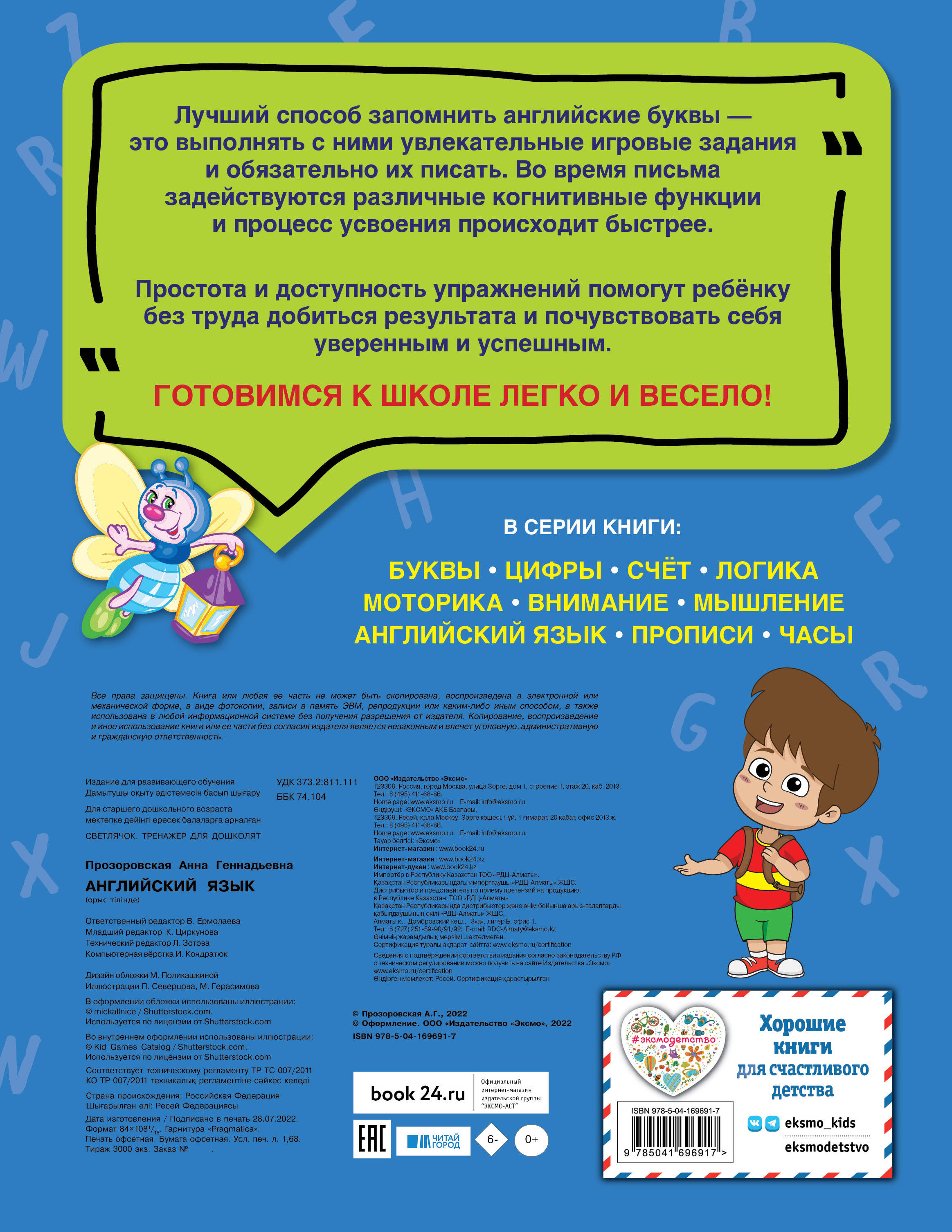 Современному человеку сложно жить в этом мире без знания английского языка. И чем раньше ребёнок начнёт приобщаться к его изучению, тем лучше он будет им владеть. И начать нужно с запоминания букв. Важно не только их знать, но и уметь выделять в словах. Очень эффективно для запоминания - писать буквы, т. к. во время написания задействуются различные когнитивные функции и процесс усвоения проходит гораздо быстрее. Выполняя интересные игровые задания, ребёнок легко запомнит английские буквы, научится выделять их среди других, выучит много новых слов, у него сформируется орфографическая зоркость, которая является важнейшим условием грамотного письма. Весёлые добрые картинки понравятся любому ребёнку, и он будет выполнять задания с удовольствием. Работая с пособием, малыш не только интересно и с пользой проведёт свой досуг, но и сделает первые шаги в подготовке к школе.| Издательство | ООО "Издательство "Эксмо" |